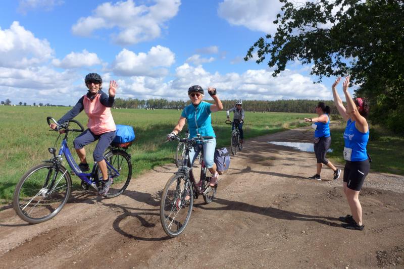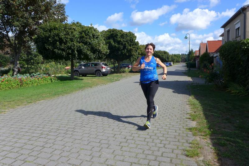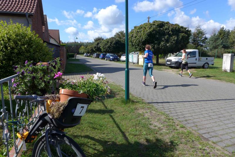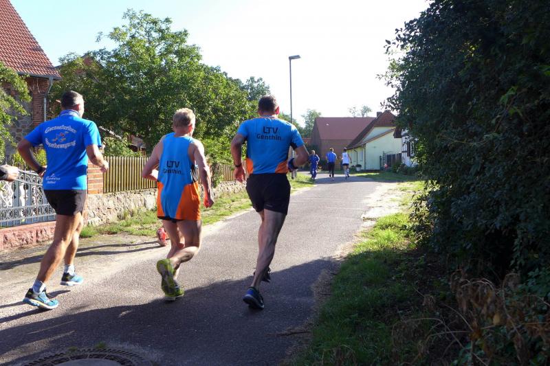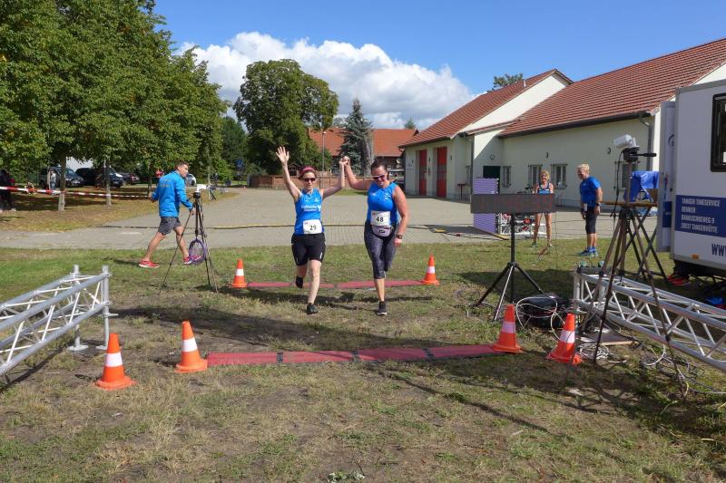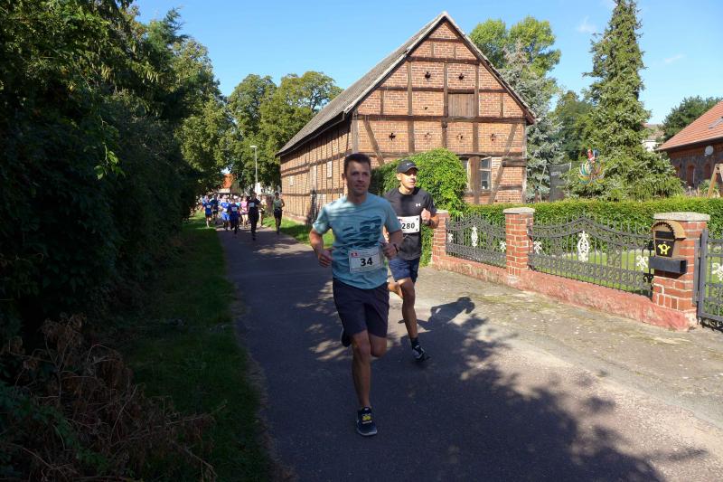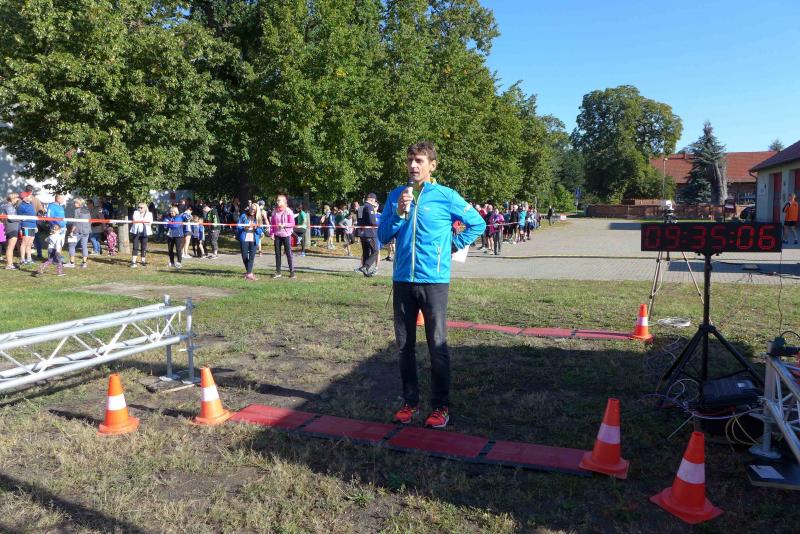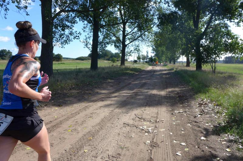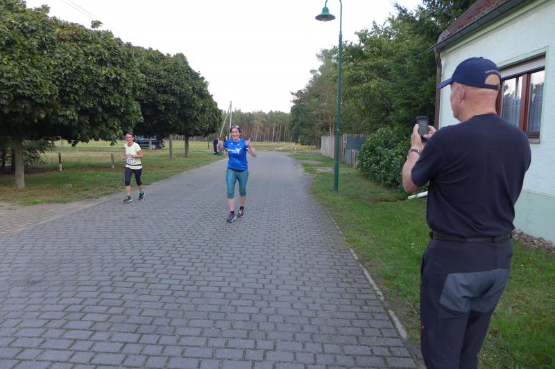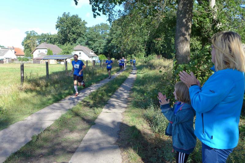 Neu im Programm war ein Halbmarathon über zwei Elf-Kilometer-Runden, welcher mit Bode-Runner Dirk Meier als erster Start auf die Strecke geschickt wurde. Bevor die Sechs- und Elf-Kilometer-Läufer dann los durften, erfolgten die Zieleinläufe der Kurzstrecken über 600 Meter und drei Kilometer. Damit waren ausreichend Hände vorhanden, die dem Läufernachwuchs einen begeisterten Empfang bereiteten. Warm geklatscht und mit gehörig Adrenalin im Blut, gehörte die Streckenführung nun ganz und gar der Mitteldistanz. Das Dreikilometerschild war gerade passiert, als die schnellsten Halbmarathonis in ihrer zweiten Runde nun die Läuferschar der Mitteldistanz überholten. Im Führungstrio lief Meier stark und nahm die antreibenden Wünsche seiner Lauffreunde für die letzten neun Kilometer gerne mit. Am Getränkestand trennten sich dann die Sechser- und die Elfer-Strecken. Stefan Sindermann freute sich über mehr Platz und setzte zu einem langen Endspurt an, was ihn in seiner Altersklasse M45 prompt auf den zweiten Platz katapultierte. Die Sportler bewegten sich durch so klangvolle Namen wie Hüttermühle, Alte Burg oder Wiechenberg und nicht weit entfernt wäre man in Mützel gelandet. Am letzten Getränkestand misslang mal wieder der Bechereinwurf. Schnell gebückt und wieder Fahrt aufnehmen, bevor die Verfolger von hinten zu nahe kommen! Vorbei an dichten Kiefernwäldern und frisch geschlagenem Holz, war bald wieder die Ortslage Parchen erreicht. Falk Heidel begleitete die ankommenden Läufer mit passenden Kommentaren in das Ziel, wo auch gleich Obst und Getränke gereicht wurden.