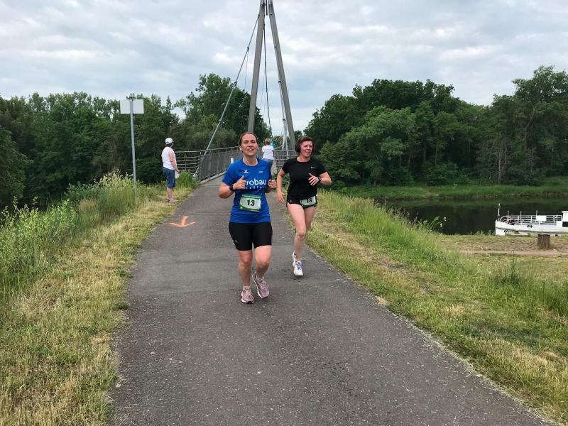 Zehn Starter der Bode-Runners liefen die Zwölf-Kilometer-Strecke, die entlang der Saale bis nach Gröna und wieder zurück führte. Die wald- und wasserreiche Laufstrecke forderte auch auf der „kurzen“ Strecke ihren Tribut. Umso schöner, dass die Organisatoren vorgesorgt hatten und die Verpflegungspunkte immer zur rechten Zeit kamen. „Durch die vielen schattigen Abschnitte war es dennoch gut auszuhalten und noch recht angenehm zum Laufen“, hielt GSB-Läuferin Janine Wuwer fest. Auch bei den Halbmarathonis, die noch ein wenig weiter die Saale entlang liefen, bevor sie ebendiese überquerten, waren die Verpflegungspunkte begehrte Flüssigkeitsspender. Auf diese 21,1 Kilometer wagten sich vier Bode-Runners.