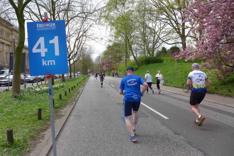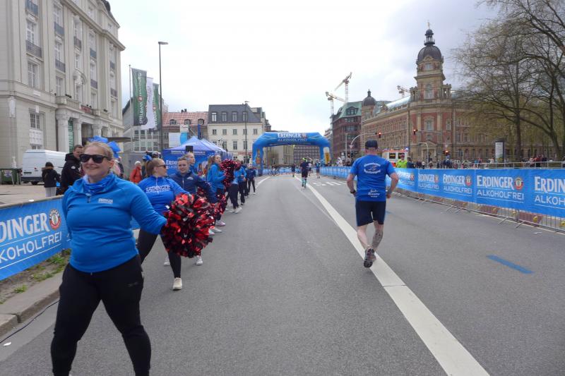Während sich bei den Männern der Kenianer Cybrian Kotut mit einer Endzeit von 02:04:47 knapp vor Stephen Kissa aus Uganda mit 02:04:48 durchsetzte, lief Yalemzerf Yehualaw bei den Frauen eine sensationelle 02:17:23. Da war für Bothe gerade Halbzeit. Es ging weiter Richtung Stadtpark und die markante Kilometermarke 30 nährte sich. Weiter war Bothe noch nie gelaufen und unter Läufern ist bekannt, dass ab 30 der eigentliche Marathon beginnt. Daher hatten sich Tina und Sabine Börner in Ohlsdorf, dem nördlichsten Punkt der Strecke positioniert, um Bothe für die letzten zwölf Kilometer zu pushen. Die beiden wussten genau, wie jetzt jeder Schritt schmerzen konnte und der Abstand der Kilometerschilder scheinbar immer länger werden würde. Nun ging es nur noch in eine Richtung, nämlich in Richtung Ziel! Im Stadtteil Rotherbaum grüßten die Zuschauer noch einmal von der Außenalster, bevor es schnurstracks auf den Funkturm zuging.