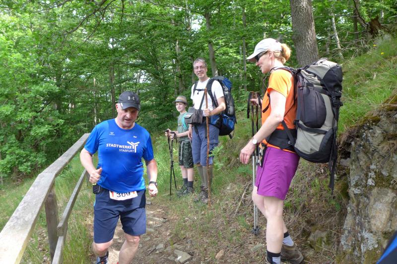 In Harzgerode lud am Pfingstsonntag der WSV zur 41. Auflage des Klippenlaufs ein. Und so wie der Name es verspricht, ging es auf den Cross-Strecken Klippe auf und Klippe ab. „Lange genug habe ich mich jetzt auskuriert!“, so Nancy Bothe nach wochenlanger Laufpause. Langsam und bedacht, aber ausdauernd wollte sie die 15-Kilometer-Distanz angehen. Ehemann Olaf, Jens-Uwe Börner und nicht zuletzt ihre bequeme Yogahose, sollten sie ab und zu an diese Vorgabe erinnern. Doch weit gefehlt, hatte sie eher den Eindruck, irgendwie immer auf ihre Männer warten zu müssen. Unversehrt und voller glücklicher Endorphine finishte das Trio die Zielline in Harzgerode. Von diesen Glückshormonen konnten die Starter über die neu aufgelegte Strecke der Halbmarathondistanz nichts aufbauen. Vom Streckenposten falsch geleitet, hatten die meisten Teilnehmer am Ende mehr als 21 Kilometer absolviert, was den Veranstalter dazu bewog, eine Sonderwertung für die Irrläufer vorzunehmen. Für Sandra Homann sprangen dabei nicht nur eine Medaille und eine Urkunde heraus, alle Erstplatzierten durften einen Pokal mit nach Hause nehmen. Zudem zauberte die Aussicht auf einen kostenfreien Startplatz im nächsten Jahr, dann spätestens wieder mild gestimmte Gesichter bei den Irrläufern. Auch auf der Fünf-Kilometer-Distanz waren einige Höhenmeter zu absolvieren, was Sabine Börner im lockeren Laufschritt gut gelang.