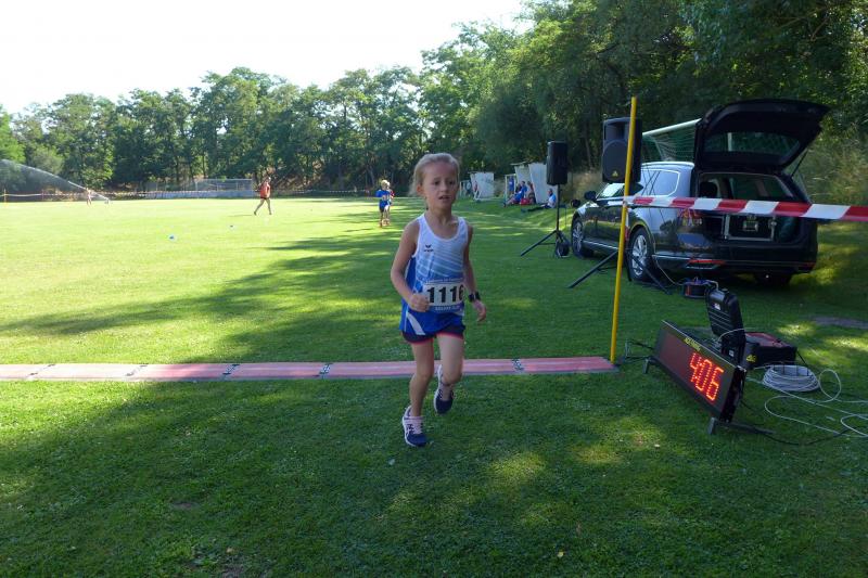 Der Schnupperlauf über einen Kilometer war für den Bode-Runners-Nachwuchs schnell Geschichte, so dass sich Lenya und Emily im Schatten oder unter dem Rasensprenger des SV Grün-Weiß Giersleben schnell wieder akklimatisieren konnten.