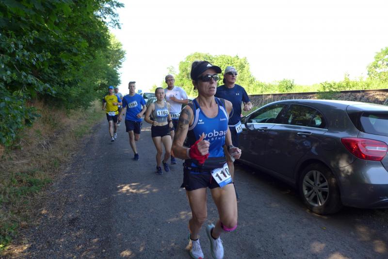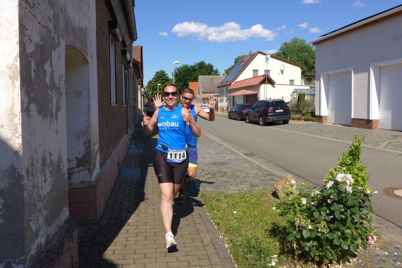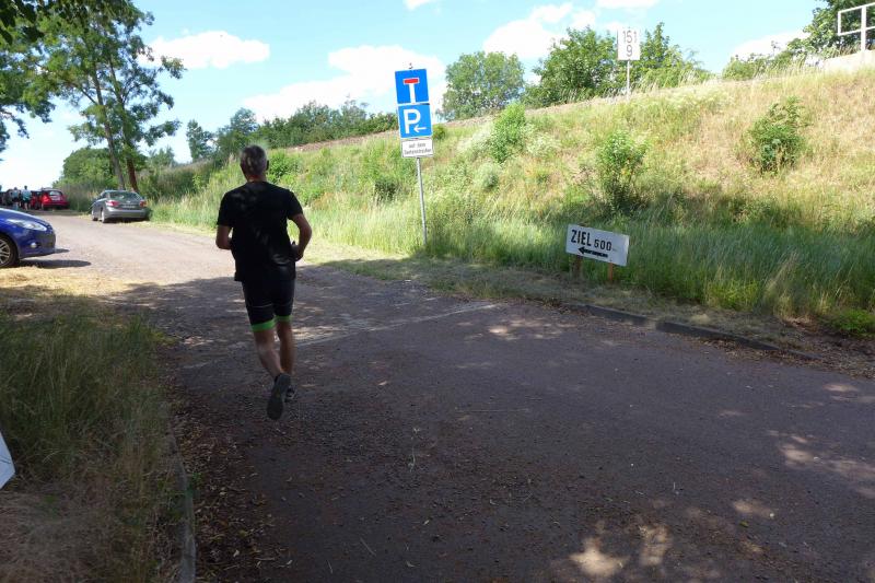 Anders die Läufer der Strecken im vierten Wertungslauf der Solvay-Cup-Serie über 5,7 und 9,8 Kilometer, die den heißen Temperaturen etwas länger ausgesetzt waren. Über den saftig weichen Spielrasen ging es für die Strecken gemeinsam vom Sportplatz zur Bahnunterführung und dann auch bald hinaus, rund um den Gierslebener Hain. Genau hier begann vor drei Jahren Rinaldo Schielkes „Laufbahn“ bei den Bode-Runners. Als er 2019 mit dem Gesamtsieg über die Kurzstrecke sein mögliches Potential zeigte, waren die Bode-Runners von dem Neuzugang sehr angetan. Aktuell holte er sich in Giersleben den Altersklassensieg in der M30 auf der Wertungsstrecke über 9,8 Kilometer und musste nur Minh Lé vom PSV Bernburg den Vortritt im Gesamtklassement der Männer lassen. „Im nächsten Jahr rutsche ich dann in Lé`s Altersklasse!“, malt sich Schielke schon jetzt die spannenden Rennen mit dem Lauffreund und Konkurrenten aus. In der Altersklasse M55 konnte sich auch noch Peter Brauer über seinen zweiten Platz freuen.