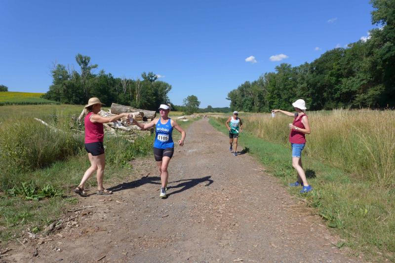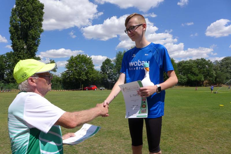 Noch einige Bode-Runners wurden in Giersleben auf das Treppchen gerufen. In sengender Mittagsglut wurde Peter Gieseler vom gastgebenden Verein nicht müde, allen Platzierten mit einem kräftigen Händedruck, einer Umarmung oder sogar mit Küsschen hier und Küsschen da zum erlaufenen Erfolg zu gratulieren. Man kennt sich eben, eine herzliche und ungezwungene Atmosphäre, zu der die Bode-Runners der Gaensefurther Sportbewegung im nächsten Jahr gerne wieder auflaufen.