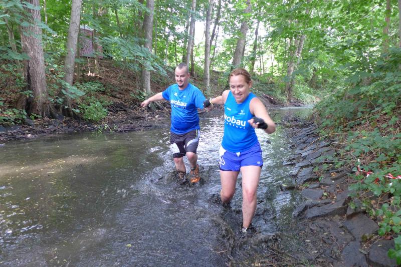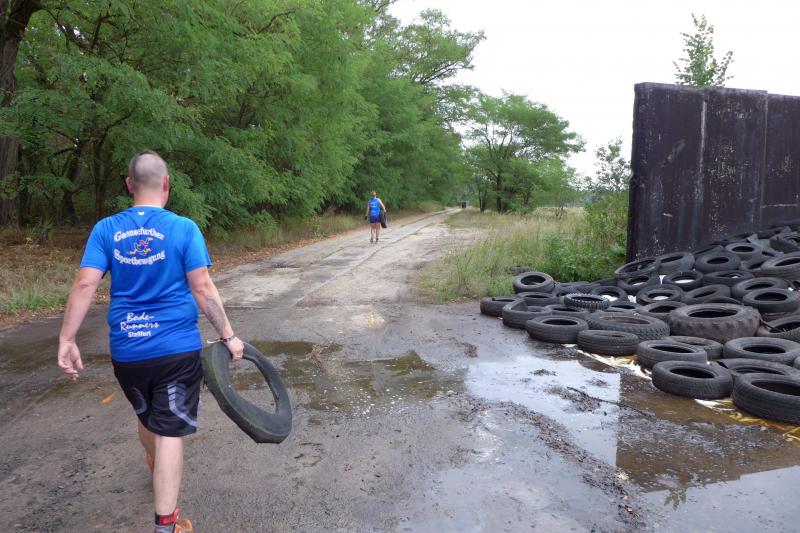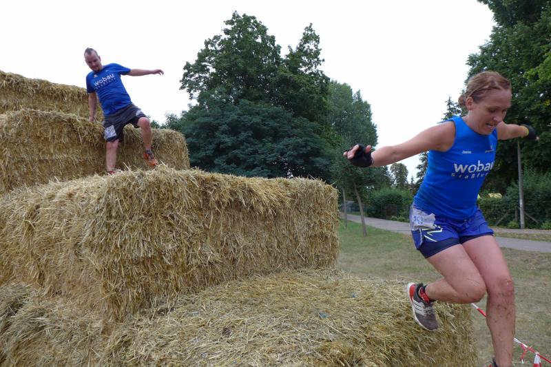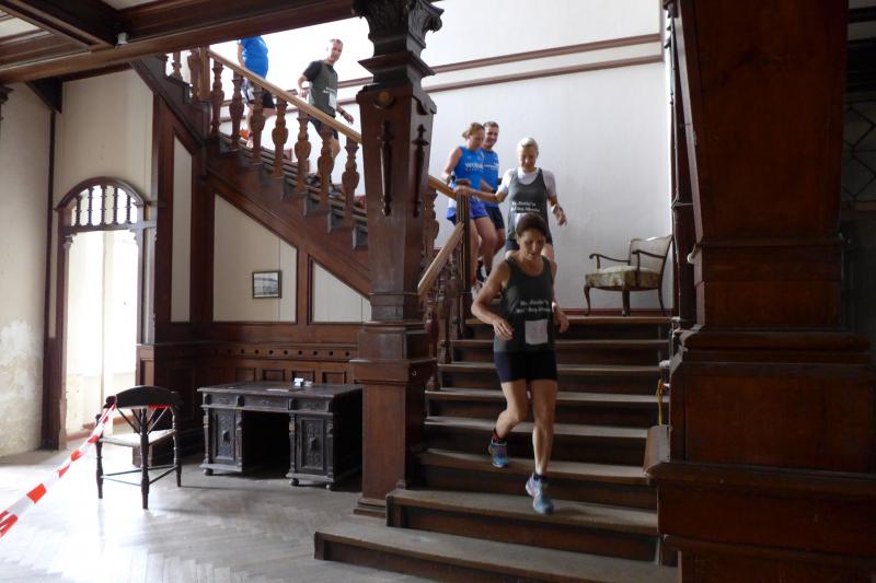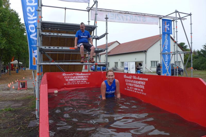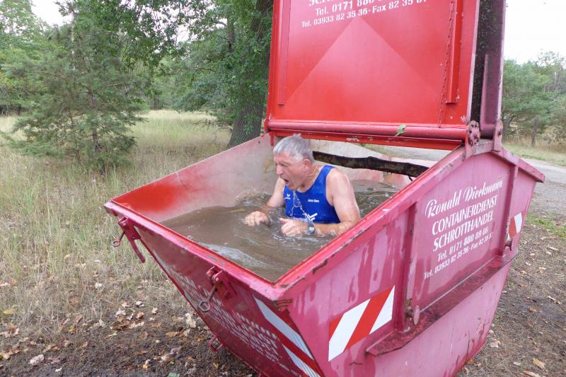 Bei der Genthiner Matschwolke waren auf jeden Fall ganze sieben Matschgänse auf einem Streich, oder besser geschrieben, in einem Team dabei. Die fünfte Auflage hatte ihren Start zum ersten Mal in Parchen. Hier sind die Bedingungen einfach noch besser, meint Mitorganisator Falk Heidel und filmte die Gaense, wie sie sich treppauf, treppab durch das altehrwürdige Parchener Schloss schoben. Mancher Streckenabschnitt war den Bode-Runners bereits vom Fiener Cross bekannt, doch da mussten sie nicht durch den hüfttiefen Mühlgraben oder zähen Morast waten, Fässer von A nach B transportieren oder auf einer Slag-Line balancieren. Die schnellsten Beine hatte man nach vorn beordert, was durchaus Sinn machte, belegten die ersten vier Matschgänse doch den zweiten Rang in der Teamwertung. Nach 30 verrückten Hindernissen und zwölf langen Kilometern, waren dann alle Bode-Runners wohlbehalten wieder im Ziel. Ein letzter Tauchgang, um sich eine der begehrten Finishermedaillen vom Grund des Containers zu fischen, gehörte inzwischen genauso zum Ritual, wie das strahlend weiße Handtuch für alle, die am Ende aus dem Dreckwasser auftauchten.