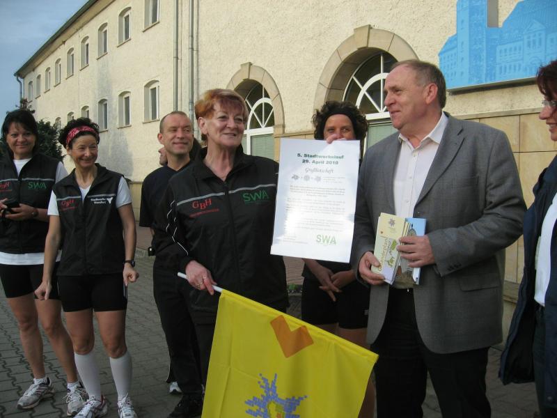 Durch die Übergabe der Staffelstäbe an die Laufgruppe aus Bernburg wurde letztendlich besiegelt, dass hier 2011 die Organisation des 6. Stadtwerkelaufes stattfindet.