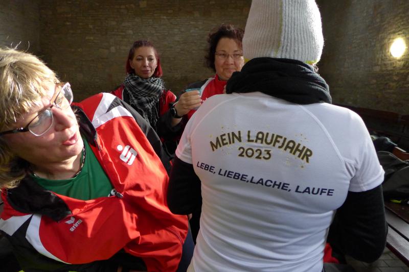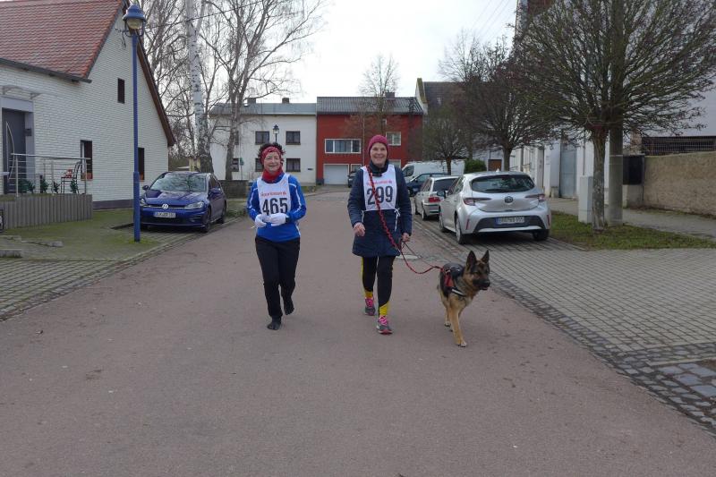 "Start um Zehn, elf Uhr Siegerehrung, ab 13 Uhr Regen!", so konnten die Bode-Runners den groben Fahrplan aus dem Chat der Trainingsgruppe entnehmen. Bis Mittag war also gutes Wetter angesagt, worauf sich auch zahlreiche Läufer und Walker zum Neujahrslauf in Aderstedt einfanden. Die Wiedersehensfreude war groß, denn nicht alle hatte man vorige Woche bereits beim Punschlauf gesehen. Die Höhe der Startgebühr konnte sich jeder Teilnehmer selbst überlegen und in der bereitgestellten Spendenbox entrichten: „Wir brauchen neue Startnummern!“, galt der Ansporn für eine hohe Summe. Dabei befanden die meisten Starter doch gerade die urigen Nummern aus Stoff, die als Leibchen um den Oberkörper gebunden wurden, als sehr originell. Im strahlenden Sonnenschein hielten die Vereine oder teilnehmenden Familienmitglieder ihre ersten Gruppenbilder für die Nachwelt fest. Die junge Hündin Paula, die zum ersten Mal mit den Bode-Runners der Gaensefurther Sportbewegung auf Reise ging, hielt mit Frauchen Renate noch respektablen Abstand zur Gruppe. Bei der Erwärmung in der großen Festscheune warteten die beiden lieber brav vor der Tür.