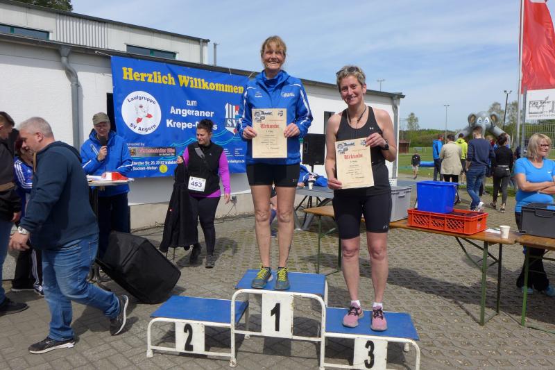 Zwei Tage später, beim Angeraner Krepe Crosslauf, war die Tragödie bereits vergessen und 19 Gaensefurther freuten sich auf den nächsten Run im Läufercup über 1,5 / 5,9 oder 10,7 Kilometer. Gerade vom Halbmarathon auf Hiddensee zurück, nutze auch Kirsten Geist den Cuplauf zum lockeren Auslaufen: "Fast wie an der Ostsee hier!", ließen doch die sandreichen Wege und die hohen Kiefern in der Ferne das Meer vermuten. Neuzugang Jens Kunkel testete die Strecke in der Walkingvariante und kam als Gesamtzweiter in das Ziel. Aber auch die Gaenseküken Emily und Lotta, Christa und Harald Fümel, Sandra Homann, Conny Günther, natürlich Kirsten Geist und ein taktisch gut gelaufener Stefan Sindermann sprangen als Platzierte erfreut auf das Podest.