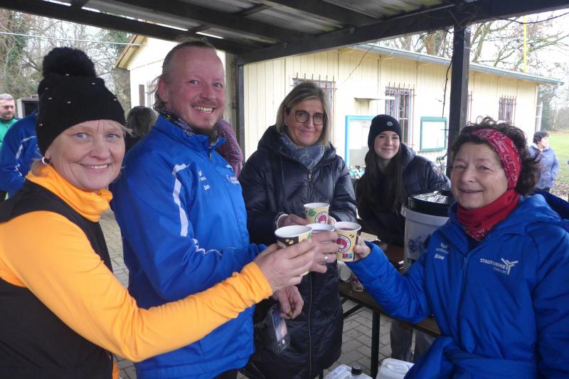 Nur einen Tag später wünschten sich beim traditionellen Punschlauf in Meisdorf die Sportler ein gesundes neues Jahr. Reger Austausch zu geplanten Läufen in der neuen Saison, bevor für 110 Teilnehmer der „Startschuss“ mittels Luftballonknall erfolgte. Weitaus kälter als noch in Ilberstedt, ging es über sechs, zehn oder 20 Kilometer auf die stellenweise vereisten Strecken. So waren auch einige Stürze zu verzeichnen, die den Lauf durch die verschneite Winterlandschaft jedoch nicht trübten. Auch das Flüsschen Selke blieb entgegen der Hochwassersituation im Salzland brav in ihrem Flussbett. Anke Delius und Kirsten Geist meisterten ihre 20 Kilometer zusammen und füllten in über zwei Stunden Laufarbeit ihre Lungen mit reichlich frischer Harzluft. Leckerer Punsch, Tee, Würstchen, Schmalzstullen, Muffins und sogar Punschkuchen waren im Ziel Belohnung für das frühe Aufstehen und die Anfahrt an diesem feuchtkalten Sonntagmorgen. Die zwei aufgestellten Feuerschalen machten nicht nur warm ums Herz sondern ließen auch die durchgeschwitzten Laufsachen schnell wieder trocknen. Da konnte man auf das inzwischen kalte Duschwasser durchaus mal verzichteten.