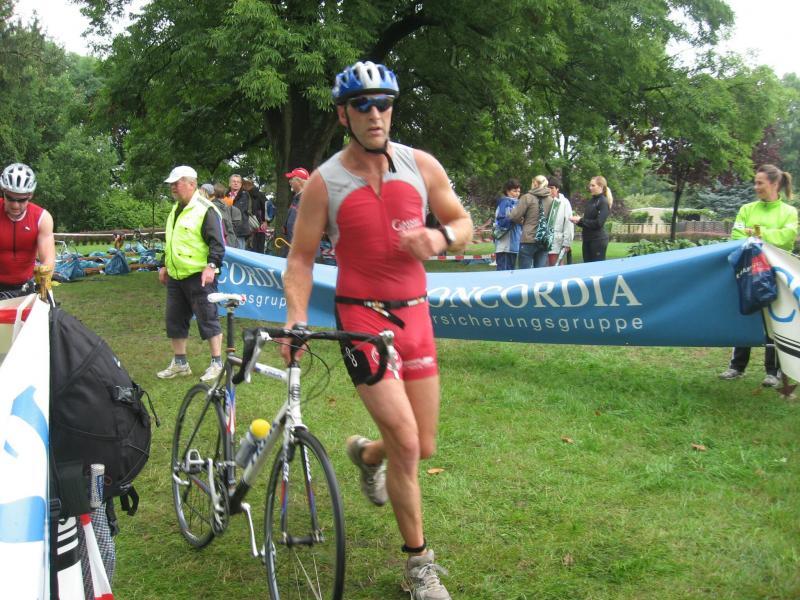Nach dem Schwimmen war Blauwitz nicht mehr einzuholen, er war vielmehr nur noch am Überholen. Vergessen war der Fahrfehler von Kelbra Anfang Juli, beim 35-Jährigen lief es unglaublich rund. Waren die 30:57 Minuten nach den 1,5 Kilometern im See noch im Bereich des Normalen – er kann aber auch in diesem Element schneller – lieferte er über die 40 Kilometer auf dem Rad in 1:03:29 Stunden eine grandiose Leistung ab, die ihm völlig neue Möglichkeiten eröffnete. Mit 41:49 Minuten über die abschließenden zehn Kilometer auf der Laufstrecke gelang ihm diese klasse Endzeit, der 13. Gesamtplatz, der zwölfte Rang bei den Männern, der Zweite in der AK 4 – und Blauwitz kam aus dem Schwärmen nicht mehr heraus. Zu verdanken hatte er es nicht zuletzt seinen völlig abgenutzten und löchrigen Joggingschuhen. "Die kann ich gar nicht mehr wegwerfen", sagte Blauwitz lachend. Die anderen schüttelten ebenso lächelnd, aber vor allem respektvoll den Kopf.