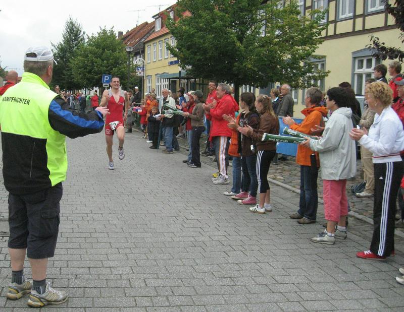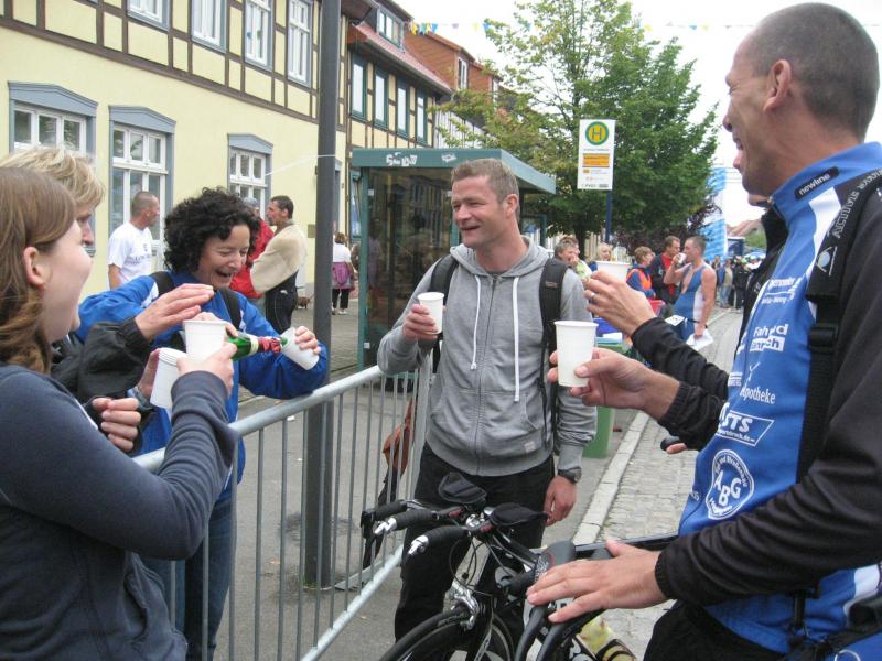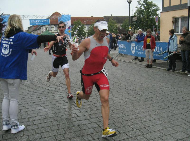 Respekt hatte nicht zuletzt Torsten Born, der schnellste Schwimmer, nicht unbedingt der Schnellste auf dem Rad, aber ein guter Läufer. Born erreichte den zweiten Wechselgarten, mitten auf dem Arendseer Marktplatz, nach der Radstrecke mit zirka drei Minuten Verspätung auf Blauwitz. "Ich dachte, ich könnte mich noch dichter heranschieben, aber Torsten war heute eine Klasse für sich", erklärte der 30-Jährige dennoch völlig zufrieden mit tollen 2:21:59 Stunden, die ihm Rang 30 in der Gesamtwertung brachten. 138 Starter erreichten übrigens das Ziel. Glücklich war am Ende auch Steffen Schöler, der auf der Laufstrecke noch Detlef Schäfer ziehen lassen musste. Beide Gaensefurther blieben weit unter 2:30 Stunden, was Schäfer (2:23:58) ob seiner Schwimmleistung zunächst weniger erfreute als Schöler (2:25:09), der allerdings betonte, kein Geheimtraining im Wasser absolviert zu haben. Die angezeigten 30:53 Minuten ließen etwas anderes vermuten. Die Zeit selbst irritiert, der Transponder registriert erst am Ausgang des Wechselgartens die Zwischenzeit. Schöler war locker im 28-Minuten-Bereich unterwegs. Ingo Bieganski hat in diesem Jahr selten einen Triathlon und erst recht nicht über die olympische Distanz absolviert. Entsprechend ruhiger ließ er es angehen, teilte sich seine Kräfte gut ein. Nach 2:42:32 Stunden erreichte er als 109. das Ziel – und war nur wenige Augenblicke später wieder zu Späßen aufgelegt. Es gab an diesem Tag eigentlich nichts, was die Laune der Gaensefurther drosseln konnte. Denn das war schlichtweg ihr Tag.