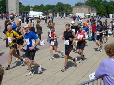 Adrenalin pur für über 9.000 Teilnehmer beim Startschuss vor der atemberaubenden Kulisse des Olympiastadions. Ein schneller Stadtrundlauf über 25 Kilometer, wo die Läufer an Sehenswürdigkeiten wie Siegessäule, Brandenburger Tor, Friedrichstraße, Gendarmenmarkt, Potsdamer Platz, Kurfürstendamm, Kaiser-Wilhelm-Gedächtnis-Kirche oder auch am Funkturm vorbei flitzten. Nicht alles davon bekam Renate Liedtke zu sehen, da sie über die zehner Distanz startete. So stand sie bereits geduscht zum Empfang der restlichen Bode-Runners bereit. Ist sonst bei einem Halbmarathon nach 21 Kilometern Schluss, geht es bei 25 Kilometern schon an die Substanz. Gut drei Kilometer vor dem Ziel waren bereits die Olympischen Ringe am Stadion zu sehen. Das Ende war scheinbar so nah, aber eine viertel Stunde Weg lag noch vor den Sportlern. Eine große Schleife lief man um die Arena, ehe man leicht abschüssig endlich den kühlen Tunnel unter der Tribüne erreichte. Laute Musik motivierte die Läufer und es folgten die letzten 300 Meter auf der blauen Tartanbahn bis zum Zielbogen. Cheerleader schrieen die Namen der Einlaufenden, Blitzlichtgewitter der Fotografen um den entscheidenden Augenblick festzuhalten. Dirk Meier bekam als erster Bode-Runner seine Medaille umgehängt. Von 3.243 männlichen Startern lag er auf Platz 436. Ihm folgten kurz darauf Michael Karg und Detlef Schäfer. Keine Podestplätze, die gingen nach Kenia, aber rundum zufriedene Gesichter. Dicht auf den Fersen der Männer, war in unglaublicher Bestform Petra Becker. Die 25 Kilometer absolvierte sie in 2:12:29 Stunden, was in der Gesamtwertung der Frauen Platz 115 von 892 Starterinnen bedeutete. Es folgten Sabine Börner und Lutz Klauß. Selbst nach durchstandener Nachtschicht ließ sich Klauß dieses Highlight nicht entgehen. Wer aber auf den letzten Metern sein letztes gab, hatte die Rechnung ohne den Wirt gemacht. Der Weg zum Ausgang, zu den begehrten Getränken und Duschen führte über geschätzte 100 endlose Stufen. Aber mit Zwischenstops wurden auch die gemeistert, schließlich wartete noch das Kulturprogramm. Ganz in Ruhe genoss man Berlin auf einer Spreerundfahrt und erkannte die Stellen wieder, die man bereits auf der BIG 25 Strecke in Turnschuhen zurückgelegt hatte.