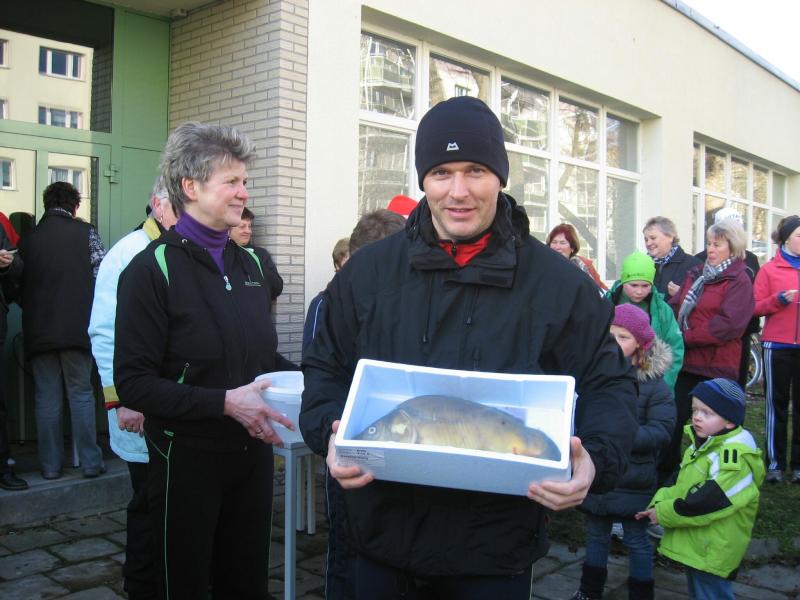 105 Läufer, Geher, Nordic-Walker und Geocacher waren beim diesjährigen Atzendorfer Silvesterkarpfenlauf dabei. Auch Pferde, Schlitten und eine Kutsche gaben dem Ganzen Volksfestcharakter. Das sei auch so gewollt, sagte von der veranstaltenden ZLG der Vorsitzende, Günter Döbbel, der nach einer Aufwärmgymnastik den Start für die Läufer wie jedes Jahr mit einem Silvesterknaller vollzog. Mit von der Partie waren – wenn auch passiv - Staßfurts Stadtratschef Dr. Walter Blauwitz, der seinen Sohn nach Atzendorf begleitet hatte, und aktiv Ortsbürgermeister Peter Rotter. Dabei konnte jeder Läufer seine Laufstrecke von 1000, 2000, 4500 oder 7500 Metern selbst auswählen. Die Nordic-Walker waren eine halbe Stunde früher gestartet und beim Geocaching, einer Art Schatzsuche mit Navi-ähnlichen Geräten, musste schon vom Start weg Kontakt mit den GPS-Satelliten gesucht werden. Als erster überhaupt kam ein 75-jähriger Sportfreund aus Hecklingen mit seinen Nordic-Walkingstöcken von der 2000-Meter- Strecke zurück. Bei den Läufern war auf der langen Strecke Torsten Blauwitz vor Ingo Bieganski (beide Gänsefurter Sportbewegung) und Christoph Lampe erfolgreich. Er bekam den von Johann Hauser dafür ausgelobten Silvesterkarpfen. Bei den Damen war Ina Schöler von der heimischen ZLG die Schnellste. Nachdem alle am Ziel waren, wurde bei alkoholfreiem Glühwein und Gebäck das Ganze ausgewertet. Fünf weitere Karpfen wurden verlost.