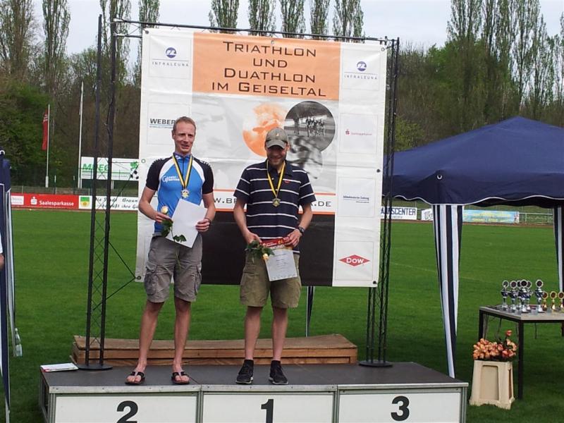 Die Triathleten unseres Vereins waren am Sonntag beim Duathlon im Geiseltal aktiv. 6 Gaensefurther Dreikämpfer im Erwachsenenbereich hatten 5km zu laufen, 22km Rad zu fahren und noch einmal 2,5 km zu laufen. Torsten Blauwitz überquerte nach 1:11,19 Stunden die Ziellinie. Damit wurde er Dritter seiner Altersklasse und Vize-Landesmeister. Auch Jürgen Eisfeld konnte von sich überzeugen. Der 70-Jährige eroberte mit einer Gesamtzeit von 1:30,31 Stunden den obersten Podestplatz und wurde gleichzeitig Landesmeister.