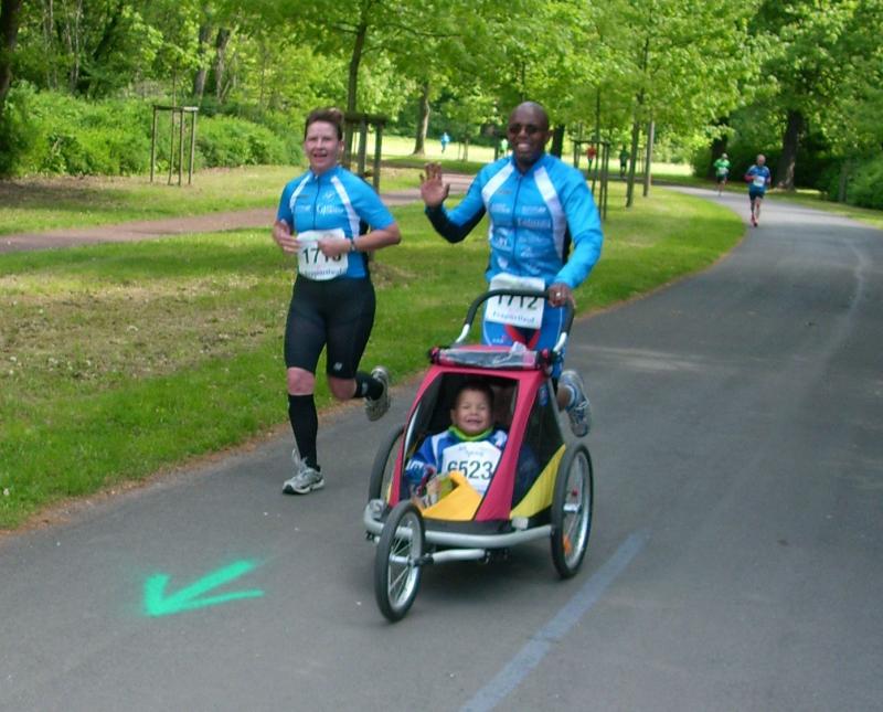 Der kleine Finn nahm im Kinderwagen platz, den seine Eltern während des Laufens schoben. Zusammen kamen sie nach 55:19,9 Minuten ins Ziel. Für Matthias bedeutete dies in seiner Altersklasse Platz elf und den 90. Gesamtrang, für Annett Platz zwei ihrer Altersklasse und viertbeste Frau insgesamt.