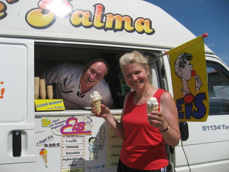 Sylvia Köhn freute sich riesig über den 1. Platz in der W 30, ebenso Jürgen Eisfeld, Triathlet der Gaensefurther Sportbewegung, in der M 70. Tröstende Worte fanden die Vereinskollegen für Börner: „Ach Jens-Uwe, letzter Platz!“ „Na und, dafür hab ich die meisten Fotos!“, grinste er und belohnte sich mit einer ordentlichen Portion Eis.