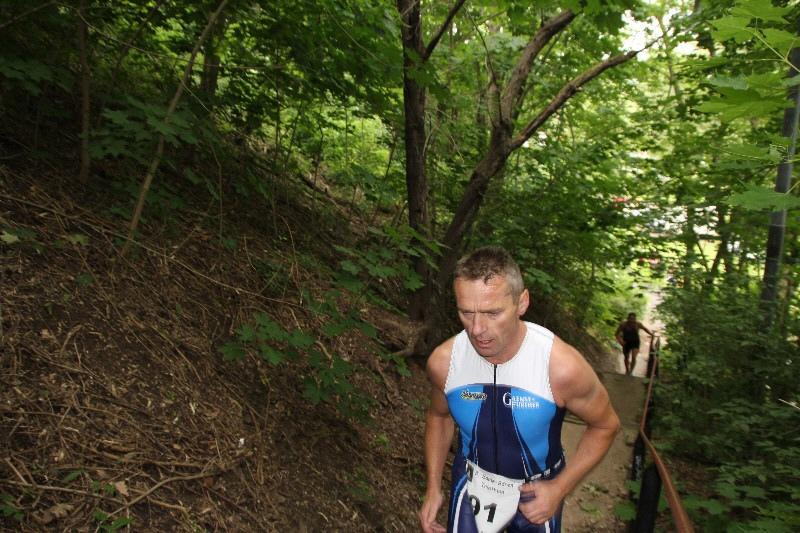 Alles drehte sich um vier Absätze à ungefähr zehn Stufen, an denen schon so mancher Starter nicht unbedingt gescheitert ist, aber doch wertvolle Sekunden eingebüßt hat. Das ganze Prozedere zweimal auf der abschließenden Zehn-Kilometer-Laufdistanz. "Viele laufen nicht, sondern gehen die Treppe hoch. Die ersten zwei Absätze nehme ich in Zweierstufen", verriet Annett Lampe und liebäugelte sogar damit, die Stufen gern auch ein drittes oder viertes Mal zu erklimmen: "Ich liebe die Treppe einfach. Dort geht es um Kraft."