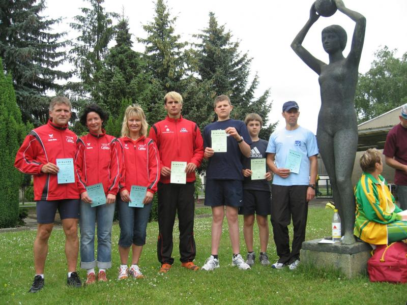 Sogar auf der langen Distanz kämpfte man erfolgreich. Nach langer Verletzungspause wieder auf dem Weg nach vorn, verpasste Detlef Schäfer den dritten Platz in der Gesamtwertung über 13,3 Kilometer nur knapp. In seiner Altersklasse bedeutete dies aber Platz eins, Jens-Uwe Börner schaffte es auf den dritten Platz. Wenn schon bis Tangerhütte, dann auch der lange Lauf, dachten sich Petra Becker und Sabine Börner bei der Anmeldung. Belohnt wurden sie dafür mit herrlichen Waldwegen und intensivem Kiefernduft. Noch größer war die Freude, als man der duschenden Petra zurief: „Mach hin, du musst zur Siegerehrung!“ Platz drei für Petra Becker in der stark vertretenen Altersklasse der 40-Jährigen! Ein schöner Zug des Veranstalters war, dass sogar alle Teilnehmer eine Urkunde mit Platz und Ergebnis entgegennehmen konnten. So bekam schließlich auch noch Sabine Börner eine Urkunde für den vierten Platz.