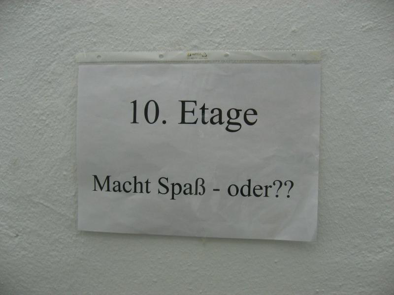 Einen waghalsigen Sprint über die 60 Meter bis hin zum Treppenhaus, ließen die äußeren Bedingungen kaum zu. Auch die ersten Stufen über eine Stahltreppe waren rutschig, bis die Schuhe hinter den nächsten Stufen trocken gelaufen waren. Was hatte Otto von den alten Hasen noch im Ohr: „Ab Etage acht oder neun wird es dann schwer!“ Aber die großen Geschosszahlen flogen schnell an den Hechelnden vorbei. Nur nicht wieder falsch abbiegen, mahnte sich Börner in Gedanken! Doch bei der 15. Auflage des Hochhauslaufes lief alles perfekt. Da ist sie, die 15! Auf der Zielgeraden im langen Flur kämpften viele Beine noch mit dem Treppendrall. Entertaste – und Ziel! „Atmen, atmen!“ rufen Börners dem nach Luft schnappenden Otto zu! „Atmen, was? Hier oben gibt es doch nichts mehr zum Atmen!“ Die Sanitäter hatten an diesem Abend wenig zu tun. Fast 250 Teilnehmer hatten es bis nach oben geschafft.