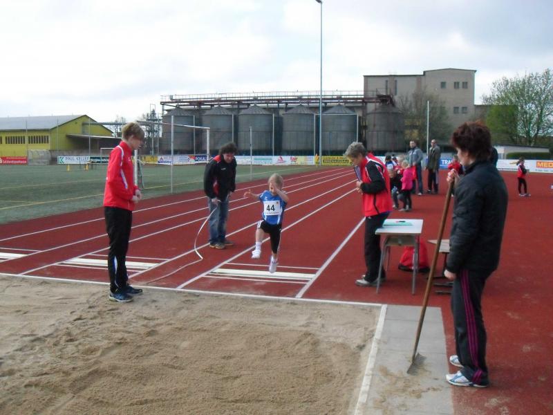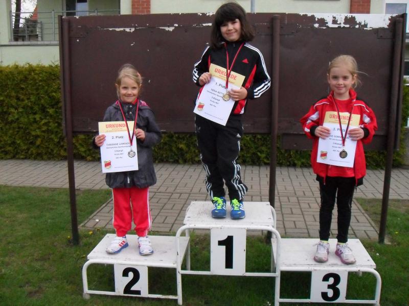 In Altersklasse w8 waren Pia Hiltscher und Melissa Helmecke am Start. Während Melissa sich mit 2 PB im 50m Lauf und im Weitsprung Platz vier erobern konnte, verbesserte Pia im Schlagballweitwurf ihre Bestmarke auf 13,50 Meter. Sie wurde Sechste. Lara Hiltscher (w10) freute sich mit 716 Punkten im Dreikampf über Platz 3. Viel vorgenommen hatte sich wieder Alina Bohndorf (w11). Der nicht abgepfiffene Fehlstart einer Konkurrentin im 50m Lauf irritierte sie jedoch und eine Bestzeit war nicht mehr möglich. Den Sieg holte sie sich trotzdem in 7,99 Sekunden. Mit 24,00 Metern im Schlagballweitwurf gelang ihr dann noch eine neue PB. Auf dem obersten Podestplatz konnte die Gymnasiastin glücklich für 1134 Dreikampf-Punkte Medaille und Urkunde entgegen nehmen.