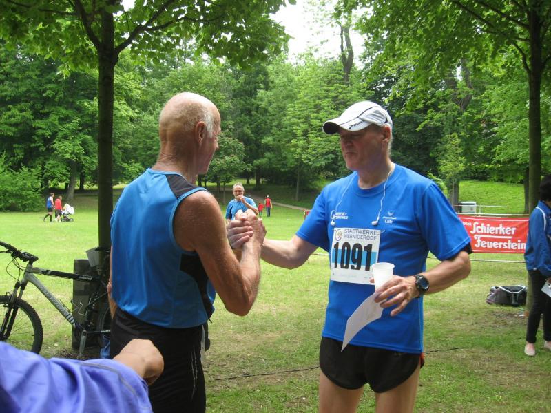 Dirk Meier kam als erster Bode-Runner nach den 21 Kilometern ins Ziel. Er hatte sein Tempo kontinuierlich durchgezogen, Börner musste bereits ab Kilometer sieben abreißen lassen. Jörg Schäper, Vater Eisfeld, Lutz Klauß und Opa Eisfeld folgten Schlag auf Schlag. Alle waren sich einig, eine harte aber sehenswerte Strecke. Angenehmer hätten es die Teilnehmer empfunden, wenn es noch eine zusätzliche Getränkestelle auf dem langen Kanten gegeben hätte. Eine Altersklassenauswertung bei den Männern war dem Wettkampfbüro bis zum Veranstaltungsende nicht möglich. So blieb es noch bis zum nächsten Tag spannend, welche Platzierungen und damit Cup-Punkte die Teilnehmer am Ende erlaufen hatten.