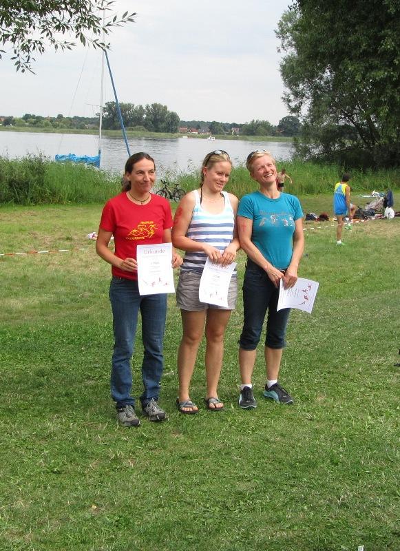 Die Quadrathletinnen machten die Entscheidung um die Plätze erst im Kajak unter sich aus. Platz 1 war sicher an die Jüngste( AK25) im Feld Ornella Graupner aus Berlin vergeben. Annegret Wille (w45) holte die bis dahin an Position zwei liegende in einer Aufholjagd ein und konnte den zweiten Platz bis ins Ziel retten. Mit einer Gesamtzeit von 1:24:54 Stunden(Schwimmen 9:17min/ Rad 32:25min/Laufen 25:20min/ Kajak 17:52min) konnte sie sich um etliche Minuten verbessern gegenüber bisherigen Quadrathlons.