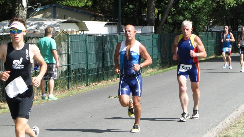 Ja wo schwimmen sie denn? Am Ufer blickte man in einige verwunderte Augenpaare, als der Schöne- becker Andreas Suck bereits die zweite Boje umkurvt hatte und sich das Hauptfeld noch auf der ersten Geraden im Wasser befand. "Wahnsinn", war nur einer der Ausrufe, die fielen, als der für den USC Magdeburg startende Suck als einziger Teilnehmer unterhalb der Zehn-Minuten-Marke und mit über 50 Sekunden Vorsprung den grünen Teppich in Richtung Wechselzone bestieg. Obwohl auf dem Rad und zu Fuß nicht so schnell unterwegs, reichte der Puffer für den Landesliga-Starter aus, um sich in der Endabrechnung auf Rang zehn zu positionieren.