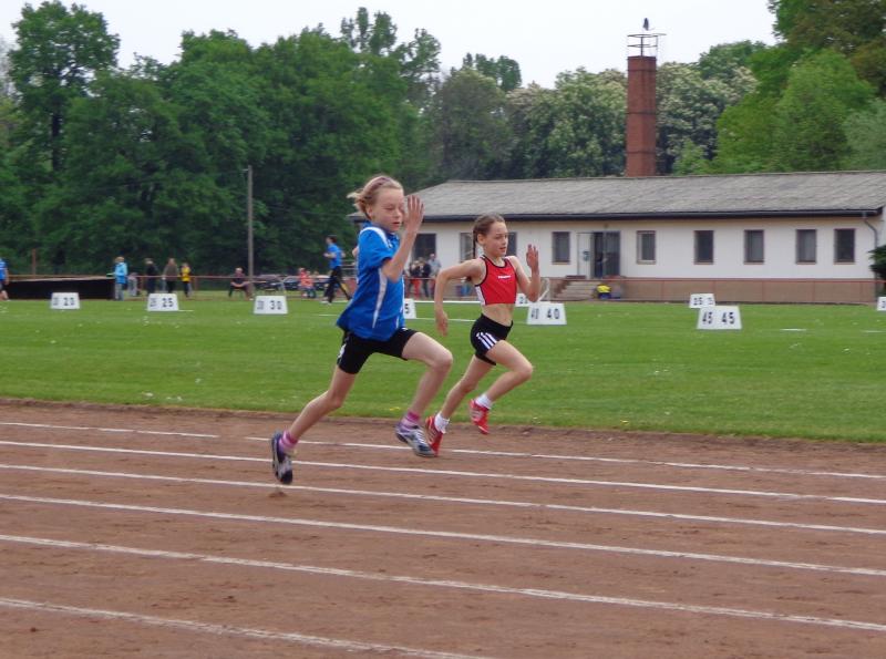In gewohnter Weise konnte Michelle Otto(w8) die Konkurrenz schocken. Mit 8,66 Sekunden siegte sie deutlich im 50m Lauf auf der Aschebahn vor einer Läuferin aus Stendal. Ihre in Bernburg aufgestellten persönlichen Bestleistungen (PB) im Weitsprung und Ballweitwurf toppte sie erneut um 9 bzw. 6 Zentimeter. Das bedeutete den souveränen Sieg bzw. einen Platz im Mittelfeld. Ihre Zwillingsschwester Laura erreichte zwar in allen Disziplinen den Endkampf, zu einer Medaille reichte es mit 5. Plätzen im 50m Lauf und Ballweitwurf sowie Platz sieben im Weitsprung diesmal nicht. "Nina scheint noch nicht richtig in der neuen Wettkampfsaison angekommen zu sein", so der Kommentar von Mutter Nicole Ritter zur Leistung ihrer achtjährigen Tochter. Im Weitsprung kam diese zwar in die Nähe ihrer Bestleistung, im 50m Lauf und im Ballweitwurf blieb sie aber unter ihren Möglichkeiten. Diese 3 Mädchen der Altersklasse w8 wollten sich auch erstmalig in der 3x800m Staffel beweisen. Laura als Startläuferin übergab als 7. an Nina. Sie konnte als Fünfte an Michelle übergeben, die diese Position halten konnte und als 5. von 9 Teams ins Ziel kam. Leider wurden alle Staffeln in der U10 (Jahrgänge 2005-2007) zusammen bewertet. Obwohl unsere Mädchen nur 2 Sekunden hinter der schnellsten gleichaltrigen Staffel aus Stendal den Lauf beendeten blieben sie ohne Medaille. Trotzdem waren alle mit ihrer Leistung sehr zufrieden.