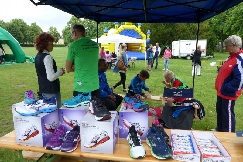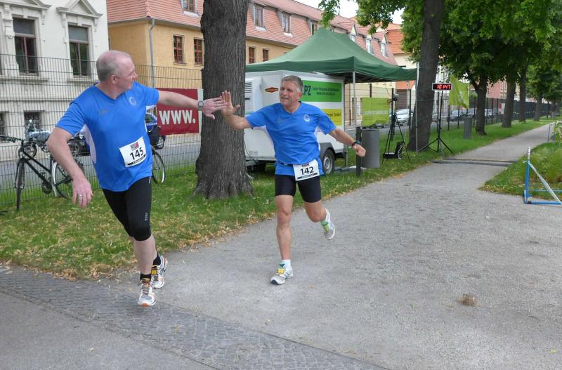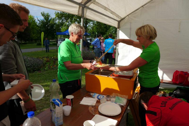 Das Rahmenprogram in der Herrenbreite war vielfältig. Während manche Teilnehmer in den Laufpausen das Sportabzeichen ablegten, erproben sich andere im modernen Biathlon. Mitunter kam es vor, dass der einlaufende Sportler vergebens nach seiner Ablösung Ausschau hielt und erneut auf die Runde gehen musste. Aus dem Team „LEX Laufexperten“ feierte Finn Lampe erst vor ein paar Tagen seinen sechsten Geburtstag. Er war nicht nur der jüngste Teilnehmer des 8-Stunden-Laufes, er war auch der ehrgeizigste! Mit Jan Hübner (8 Jahre) hatten sich zwei gefunden, die nicht zu stoppen waren. Inzwischen hatte die Physiotherapie viel zu tun. Auf der Liege wurden hart gelaufene Waden, Muskelkrämpfe oder Rückenschmerzen direkt vor Ort bekämpft. Über acht Stunden sorgte der Veranstalter für eine optimale Verpflegung der Läufer. Jens-Uwe Börner wähnte sich bereits im Cola-Schlaraffenland. Die Rundenauswertung wurde zu jeder vollen Stunde bekannt gegeben. Am Ende standen 105 Runden im Ergebnisprotokoll der Clopay-Männer-Staffel. Für die Mix-Staffel der „LEX Laufexperten“ erlief Wirbelwind Lampe stolze zehn Runden. Viele Teams ließen es sich nicht nehmen, die letzte Runde dieses langen Laufevents gemeinsam zu genießen. Der 2. Aschersleber BewegWasTag ging mit 1.361 erlaufenden Kilometern in das Protokoll ein. Das ist im nächsten Jahr bestimmt noch zu toppen.