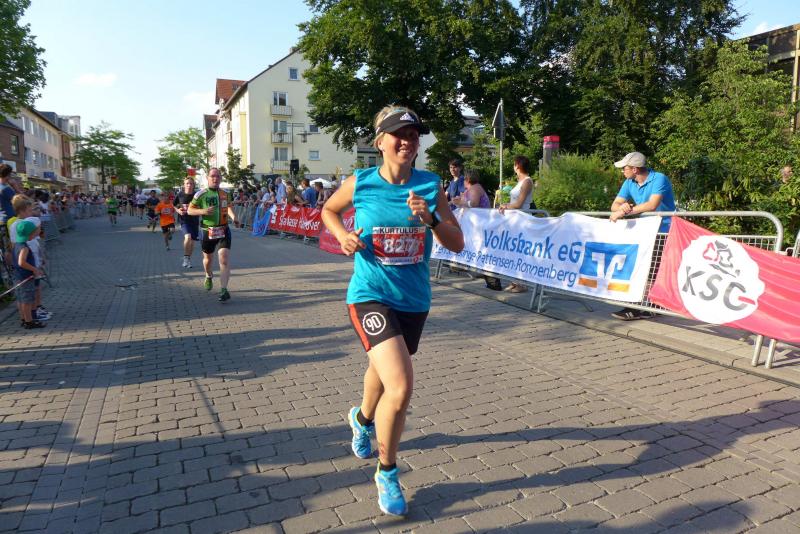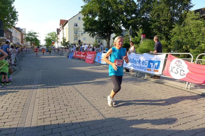 Beim Start des Hauptlaufes über fünf Runden konnte man dann schon vom „Abend“-City-Lauf sprechen. Die heiße Luft stand in den Straßen, aber die tiefere Sonne legte die Häuserfronten bereits in längere Schattenabschnitte. Jens-Uwe und Sabine Börner hatten den schnellen Rundkurs noch in guter Erinnerung, für Sylvia Köhn war es die erste Teilnahme beim Lehrter Citylauf. Auf der gesamten Strecke herrschte Volksfeststimmung. Aufgestellte Rasensprenger sorgten für Abkühlung, bei Bedarf bestand auch die Möglichkeit sich mit einer Ladung aus dem Wasserschlauch anspritzen zu lassen. Runde für Runde spulten die Bode-Runners ihre Kilometer ab, an jedem Getränkestand wurde zusätzlich Wasser getankt. Angefeuert von den vielen Zuschauern musste der Zielbogen vier Mal durchlaufen werden, bevor er endlich ein letztes Mal auf der Zielgeraden zu deuten war. Geschafft! Jens-Uwe Börner erlief von 63 Startern in der Altersklasse M50 einen zweiten Platz! Gewinner waren am Ende alle, denn wer es bei diesem 13. Lehrter Abend-City-Lauf ins Ziel geschafft hatte, erlebte seine ganz eigene Laufgeschichte. Zufrieden über das Geschaffte und über eine meistergültig organisierte Veranstaltung, ging für die Gaensefurther kurz vor Mitternacht die Reise wieder in Richtung Sachsen-Anhalt.