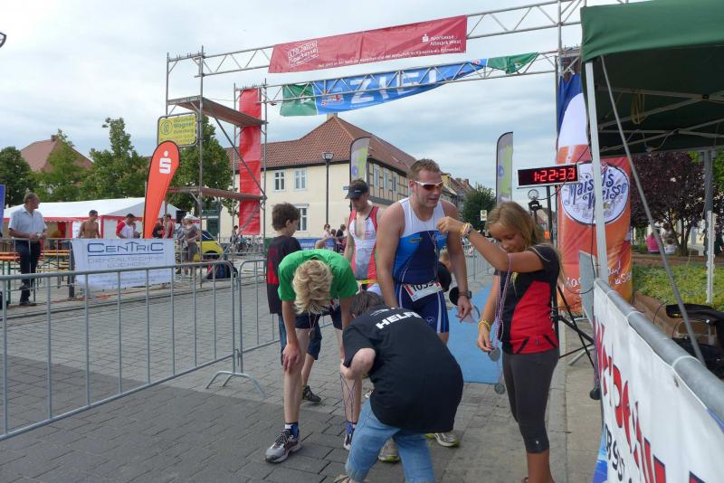 Kurz zuvor hatte bereits Neuzugang Maik Löwe die Sprint-Distanz über 750 Meter Schwimmen, 20 Kilometer Rad und fünf Kilometer laufen absolviert. Mit Platz vier im hart umkämpften Männerklassement, war seine Platzierung unter dem Strich die erfolgreichste der Gaensefurther Triathleten an diesem Tag.