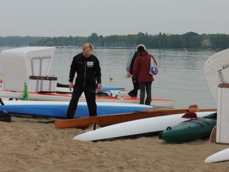 Beim BerlinMan am Wannsee hieß es für etwa 130 Quadrathleten aus 11 Ländern 750m zu schwimmen, 4 Kilometer zu paddeln, dann 24 Radkilometer durch den Grunewald zu fahren und abschließend nochmal 5 Kilometer auf der Laufstrecke zu absolvieren. Kompliment an die Veranstalter, die eine hervorragende Veranstaltung möglich machten, mit guter Stimmung und äußerst freundlichen und informierten Helfern. Ein Wettkampf der Quadrathleten muss im Voraus gut geplant werden und bedarf einiger Absprachen mehr. Zu allen Utensilien, die ein Triathlet benötigt, kommt noch eine komplette Kajakausrüstung dazu. An den aufwendigen Autoaufbauten für die Boote kann man sich schon im Vorfeld der Wettkämpfe gut erkennen. Da der Start bereits 8.30 Uhr am Samstag erfolgte, mussten die Kajaks am Vorabend am Wannsee abgelegt werden. Bereits um 6.30Uhr am Wettkampftag begannen die offiziellen Wettkampfvorbereitungen mit dem Check In für die Rennräder. Zum Glück, zeigte sich das Wetter von seiner besten Seite. Sogar die Sonne schien und kaum ein Windzug war auf dem See, was gleich eine entspannte Stimmung bei allen Wettkämpfern verbreitete. Wellen und Wind mögen die Kanuten in ihren kippligen Booten nämlich überhaupt nicht.