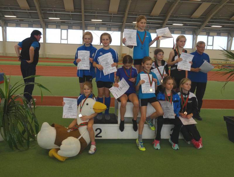 Ihre Schwester Laura Otto (w9) zeigte auch gute Ergebnisse (50m-8,89s/weit-3,11m/400m-89,78s/3-K-850P.), eine neue persönliche Bestleistung konnte sie aber nicht verbuchen. Mit Platz 19 reihte sie sich im vorderen Mittelfeld ein. Gleich zwei persönliche Rekorde sind hingegen Fabienne Sämisch (w9) gelungen. Die Kleinste des Teams lief den 50m Lauf in 9,08 Sekunden und im Weitsprung knackte sie mit 3,06 Metern erstmals die 3 Meter-Marke. Mit zusätzlichen 90,56 Sekunden im 400m Lauf standen 820 Punkte im Wettkampfprotokoll, Platz 26. Sophia Böhnke (w9), die erst an wenigen Wettkämpfen teilnahm, nutzte ihre Chance, um weitere Erfahrungen zu sammeln. Dass sie ihre PB im Weitsprung auf 2,88 Meter verbessern konnte, wird ihr zusätzliches Selbstvertrauen für die nächsten Einsätze geben. Neben 94,14 Sekunden im 400m Lauf und 9,44 Sekunden über 50m wies die Bilanz zum Schluss 739 Punkte aus.