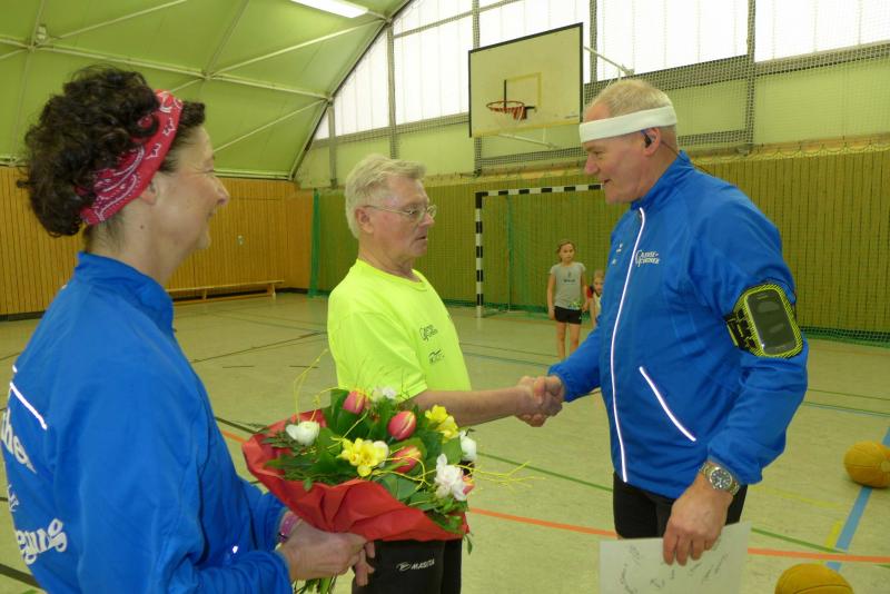 Kürzlich feierte Leichtathletikabteilungs- und Übungsleiter Joachim Rösler seinen siebzigsten Geburtstag. Vertreter der Vereinsleitung, Bode-Runners und seine Schützlinge aus den Trainingsgruppen ließen es sich nicht nehmen, dem Jubilar zu gratulieren und ihm noch recht viele, gesunde Jahre zu wünschen. Neben vielen Blumen, Gutscheinen und liebevoll gestalteten Collagen überraschten ihn "seine Kinder " sogar mit einer selbstgebackenen Torte und einem Jubiläums-T-Shirt. Als dann alle "Happy birthday" anstimmten, musste er sich doch die eine oder andere Träne verdrücken. Er versicherte allen, während sie seinen gleich verteilten Kuchen verspeisten, dass er noch lange nicht ans Aufhören denkt, sofern seine Gesundheit mitspielt. Und vielleicht findet sich ja doch noch ein Nachfolger, der seine ihm an Herz gewachsene Trainertätigkeit mit den jungen Athleten fortsetzt.