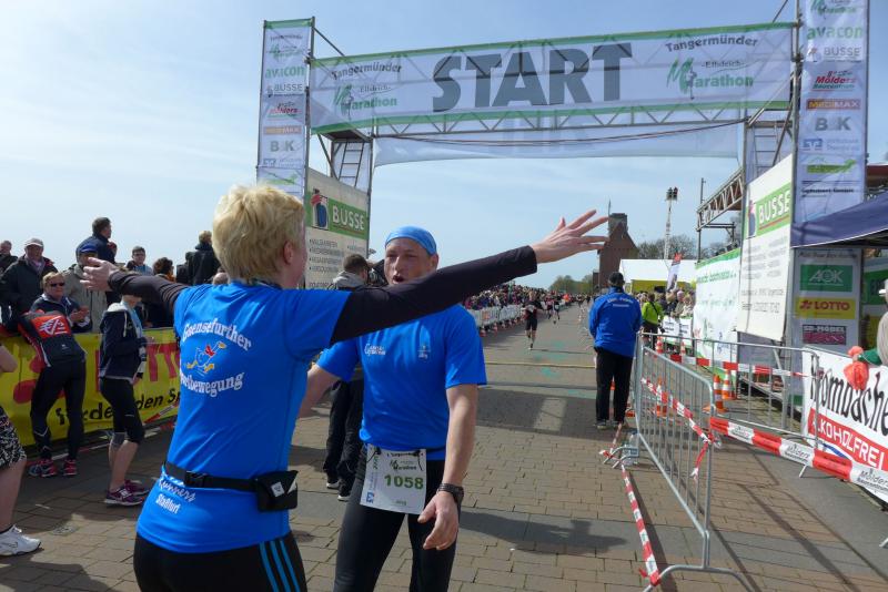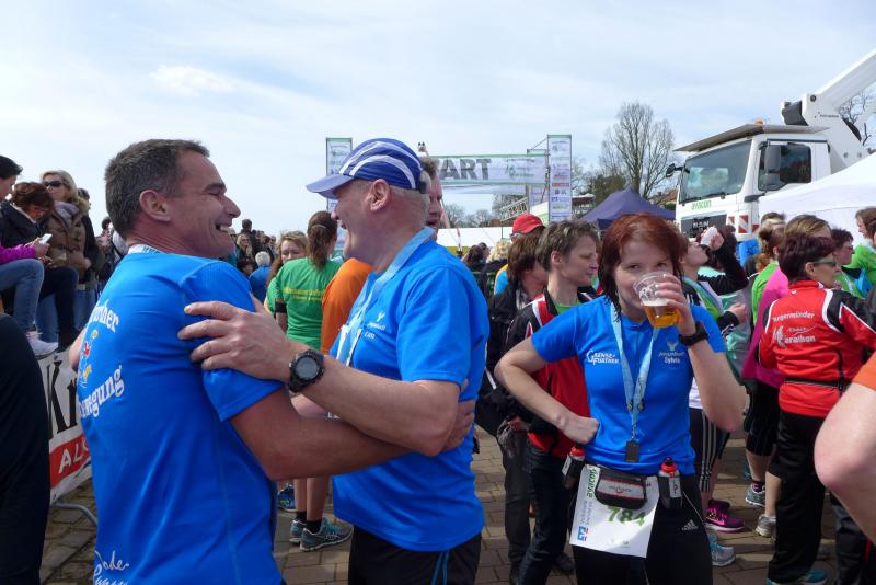 Alle warteten und dann kam Schlenker! Fix und fertig, aber stolz wie Oskar, finishte er nach schweren 04:18 Stunden. Erst im Nachgang registrierte die Gruppe, dass er der erste Marathonläufer in der Altersklasse M30 war. Erster Marathon, erster Platz, was für ein Tag! Auch für Heidi und Werner Schwenke vom BSV Eickendorf lohnte sich der Kampf beim 8. Elbdeichmarathon. Mit einem zweiten und einem ersten Platz in ihren Altersklassen bewiesen sie wieder einmal mehr ihre Laufstärke.