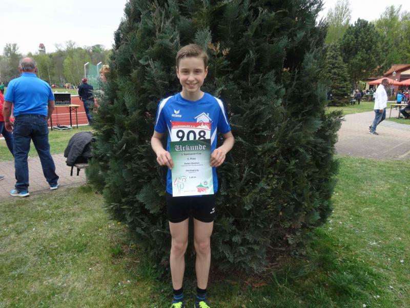 Marek Kadereit (m13) eröffnete mit Kugelstoß das Wettkampfgeschehen für die Gaensefurther. Mit persönlicher Bestleistung (PB) von 11,74 Meter sicherte er sich hinter einem Konkurrenten aus Halle Platz zwei. "Wenn es ihm gelingt, seine Technik weiter zu verbessern, kann es noch entschieden weiter gehen", waren sich die Experten danach einig. Mit einer neuen PB im Hochsprung von 1,45 Meter, die ihm aber nur Platz fünf einbrachte, machte Robin Dietrich (m13) auf sich aufmerksam. Im Weitsprung wurde er Siebter. Der gleichaltrige Moritz Himpenmacher war mit großen Erwartungen in Bernburg angetreten, aber Beschwerden im Bein ließen nach 1,35 Meter im Hochsprung keine Fortsetzung des Wettkampfes an diesem Tage mehr zu.