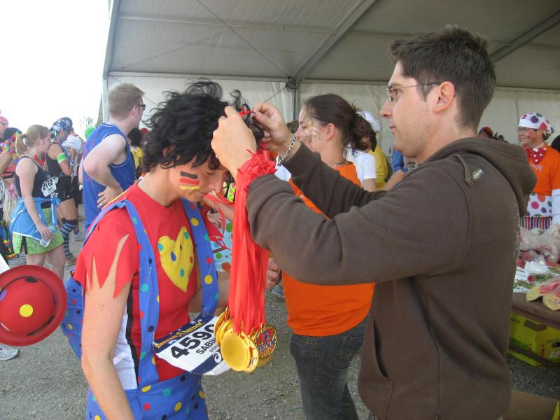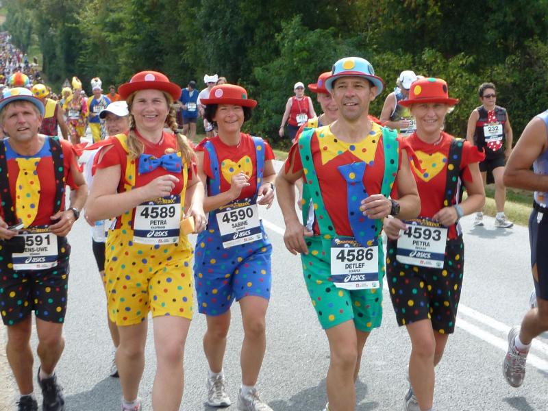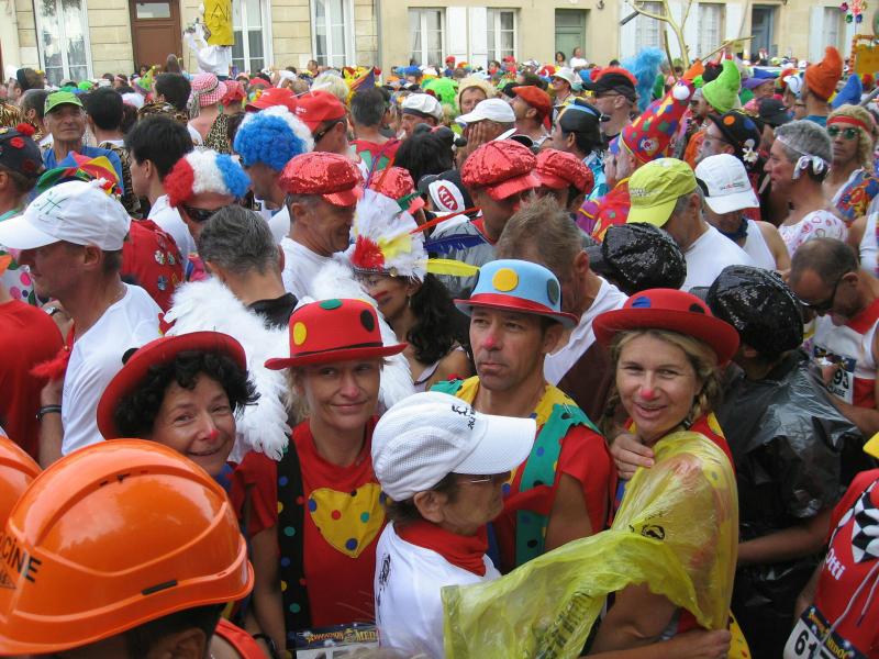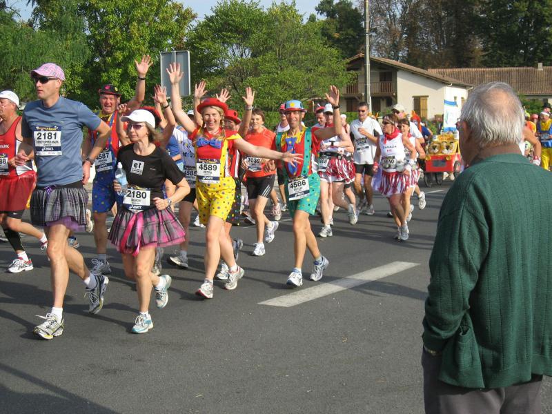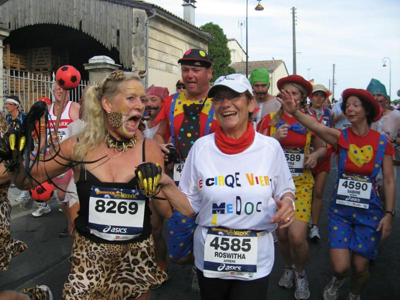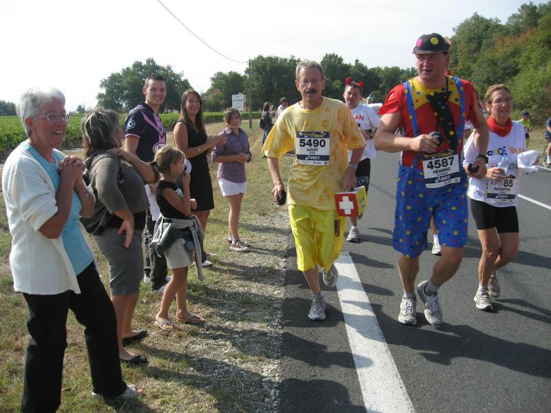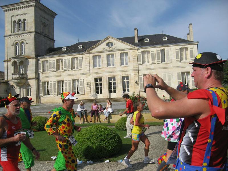 Neun Bode-Runners der Gaensefurther Sportbewegung gehörten zu den glücklichen Teilnehmern am Marathon des Chateaux du Medoc. Zusammen mit Sportlern aus Halberstadt, Aschersleben, Bernburg und Frankfurt bezog man im Feriendorf Lacanau an der südfranzösischen Atlantikküste Quartier. Ein sonnenverwöhntes Paradies unweit der Chateaus, welche sich durch die edelsten Weine dieser Erde ihren Namen machten. Erwartungsvoll begab sich die Gruppe in das Meer der knapp 9.000 Läufer und nach einem fast zwei stündigen Showprogramm, ging es dann wirklich auf die 42,195 Kilometer lange Weinverkostung. Der erste WC-Stopp erfolgte bereits vor dem ersten Kilometerschild, denn der eigene, gut gefüllte Getränkevorrat machte sich nach dem langen Stehen in morgendlicher Kälte bemerkbar. Kein leichtes Unterfangen, hatte man doch die ursprüngliche Laufbekleidung gegen ein Clown-Kostüm eingetauscht. Nachdem alle Hosenträger und Sicherheitsnadeln wieder an der richtigen Stelle waren und man inzwischen von schätzungsweise 4.000 Läufer überholt wurde, verließ die Gruppe unter dem Beifall zahlreicher Schaulustiger Pauillac. Eine Runde um die ersten Chateaus war zu absolvieren, bevor man nach 22 Kilometern den Ort wieder erreichen wollte. Ziel war, diese Strecke ziemlich zügig zu laufen, dann bei Kilometer 22 Renate Liedtke mitzunehmen und den Rest des Marathons gemeinsam zu genießen. Einen ersten erlesenen Tropfen Beychevelle gab es bereits bei Kilometer sieben. À la vôtre! Läufer aus der ganzen Welt prosteten sich genüsslich zu, die Bode-Runners vor jedem Schloss im Fotoshooting. Alle Verpflegungsstände waren üppig gedeckt. Neben frischem Obst reichte man den Läufern Salzgebäck, verschiedene Brot- und Käsesorten, Kuchen und Kekse, Trockenfrüchte, Wasser, Cola und natürlich immer wieder ein Becherchen Rotwein. Nach gut 2,5 Stunden erreichte man wieder Pauillac und Renate übernahm die Tempoarbeit. Mit den Chateaus Mouton und Lafite Rothschild nährte sich die Gruppe einem weiteren Höhepunkt. In der Parkanlage am prunkvollen Schloss, kredenzte man die edlen Tropfen natürlich in Gläsern. Eine logistische Meisterleitung für über 8.000 Läufer! Bereits mächtig dem Alkohol verfallen, ließen es sich einige Läufer nicht nehmen, im Teich der Rothschilds ein ernüchterndes Bad zu nehmen. Außer der zunehmend schwerer werdenden Beine verkrafteten die Staßfurter Läufer die ungewohnte Herausforderung bislang ohne Verluste. Eine Zielzeit von 6:30 Stunden war vom Veranstalter als Zeitlimit vorgegeben, dass müsste doch zu schaffen sein! Inzwischen war Kilometer 36 passiert, die Anstiege zu den höher gelegenen Chateaus lagen hinter den Läufern und es ging hinaus auf die Küstenstraße. Vor einem kleinen Imbisswagen drängte sich die Läuferscharr. Vom dicken Bayonner Schinken schnitt ein waschechter Franzose dünne Scheiben, die fluchs geschnappt, durch die Masse gereicht wurden. Ein leicht salziger Gaumenschmaus für den sich die kleine Pause gelohnt hatte! Nicht weit entfernt roch man bereits das nächste Highlight. Auf großen Tabletts wurden Austern mit Zitronen gereicht. Dazu servierte man den Läufern einen trockenen Weißwein. Für alle Bode-Runners eine Mutprobe die bereits im Vorfeld im Pflichtenheft aufgenommen wurde. Und eine Erfahrung, welche die meisten nicht noch einmal haben müssen. Da zog der Duft von frisch gegrilltem Rindersteak die Läufer schon eher zum nächsten Anlaufpunkt. Wer noch nicht genug hatte, konnte sich dazu auch einen feinen Cognac einschenken lassen. Nach diesen Schlemmermeilen und der brütenden Sonne sehnte man sich nach dem Ende. Nun kam auch noch ein Franzose mit einem riesigen Spiegel auf die Mädels zu. Danke, wir wissen wie es um uns gestellt ist, versuchte man zu übermitteln. Aber höflich lud er an den Straßenrand zur Auffrischung der Schminke ein, schließlich sollte beim Zieleinlauf alles perfekt sein. Nun hatte man also auch noch die Deutschlandfarben auf der Wange und nachdem alle noch ein Stieleis naschten, kamen auch die Kräfte wieder zurück. Ein Blick auf die Stoppuhr: „Das schaffen wir noch unter sechs Stunden!“ Gemeinsam genoss man nach 5:58 Stunden das Überqueren der Ziellinie, über 3.000 Läufer sollten noch folgen. Nicht umsonst spricht man vom „längsten Marathon der Welt“.