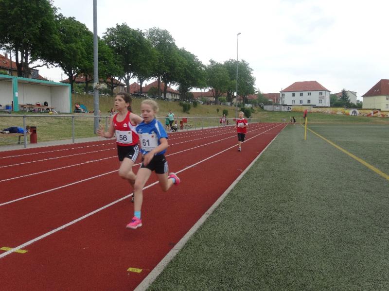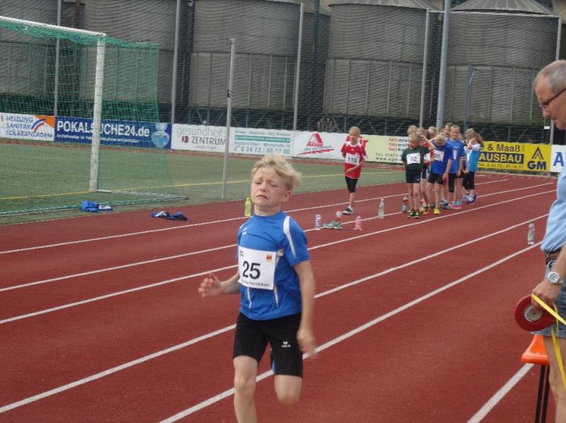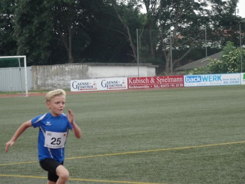 Fabienne Sämisch (w9) stellte sich der Konkurrenz im Dreikampf und im 600m Lauf. Für ihre Ergebnisse von 9,16s(50m)/2,96m(weit)/ 21,50m(Ball) im Dreikampf standen 874 Punkte (PB) und Rang 6 am Ende zu Buche. Besonders machte sie aber im 600m Lauf auf sich aufmerksam. Am Anfang unter den Führenden, musste sie das Tempo wegen Schmerzen im Oberschenkel reduzieren und fiel zurück. Auf der Zielgeraden biss das zierliche Mädchen dann aber die Zähne zusammen, überholte kurz vor der Ziellinie noch eine Konkurrentin und kam mit PB von 2:27,13 Minuten ins Ziel. Auch wenn sie die Sympathien der Zuschauer gewonnen hatte, für einen Podestplatz reichte es leider nicht.