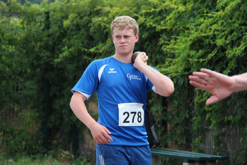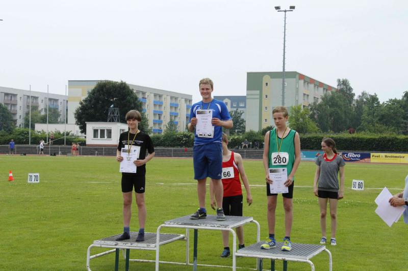 Für Marek Kadereit (m13) begann das Wettkampfgeschehen mit seiner Lieblingsdisziplin, dem Speerwurf. Doch auch diesmal sollte trotz aller Bemühungen die von ihm angepeilte Marke von 45 m nicht erreicht werden. Seine geworfenen 42,03 Meter reichten zwar souverän zum Sieg gegen seine 4 Mitstreiter und zum Bezirksmeistertitel, aber zufrieden mit sich war der Athlet nicht. Was beim Training kürzlich noch klappte, wollte bei der BM einfach nicht gelingen. Beim folgenden Kugelstoßen knackte er dann beim 1. Versuch gleich die lange erträumte Marke von 12,00 Meter, konnte sich im Verlauf des Wettkampfes sogar noch bis auf 12,55 Meter steigern. So war er dem haushohen Favoriten von der LG Altmark mit einer Bestleistung von 13,45 m doch sehr nahe gekommen, weil dieser zur BM sein Leistungsvermögen nicht vollständig abrufen konnte und nur mit 12,85 m den Sieg und Titel für sich einstrich. Weil in Diskuswurf ein Teilnehmerfeld von 4 angegeben war, bestand das Ziel im Erreichen des 3. Platzes. Viel mehr hatte Marek angesichts der mäßigen Technik und dem fehlenden Training nicht anvisiert. Den 1. Wurf machte er aus dem Stand, um einen gültigen Versuch zu haben. Beim 2. Versuch schleuderte er den Diskus dann auf 32,36 Meter, was am Ende den unverhofften Sieg und den Titel bedeutete. So konnte er mit zwei Titeln und einem Silberrang im Gepäck hochzufrieden den Heimweg antreten.