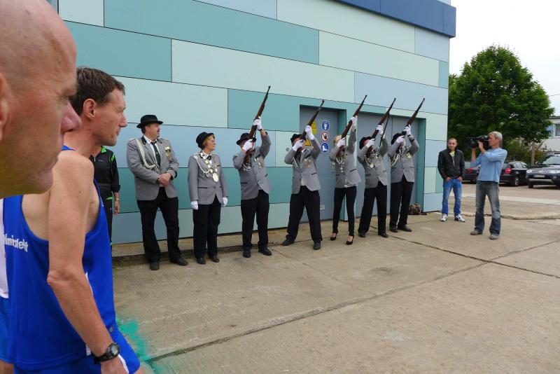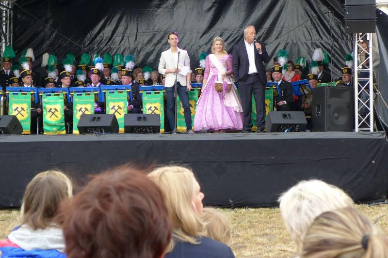 Mit dem Salutschuss der Schricker Schützen begann die originelle Führung durch das Betriebsgelände zunächst am Zielitzer Schwimmbad. Vorbei an der Straußenfarm „Glück Auf“, registrierte man die emsigen Vorbereitungen auf den angrenzenden Festwiesen. Spätestens nach dem Passieren des Pförtnerhäuschens offenbarten sich die gigantischen Betriebsanlagen für die aufwendige Kaliproduktion. „Immer schön dem Förderband folgen!“, lautete die einfache Wegbeschreibung des freundlichen Streckenpostens, der sich irgendwie schelmisch die Hände rieb.