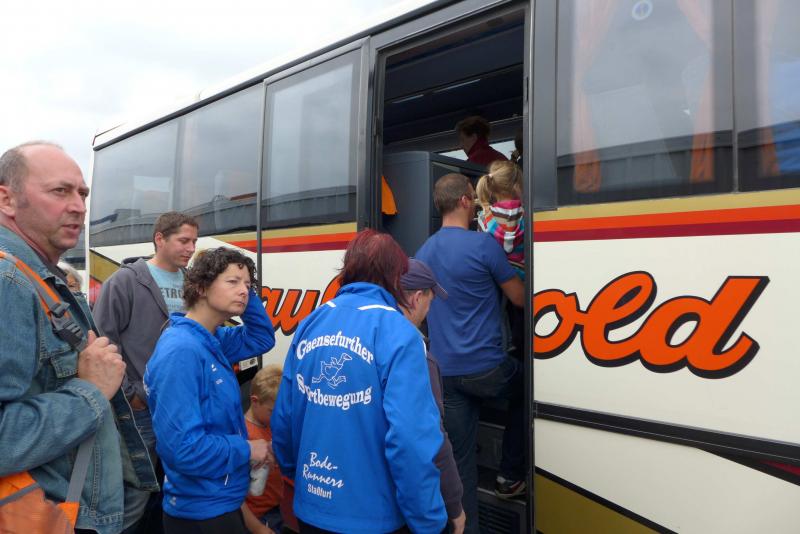 Als Erlebnislauf ausgeschrieben, verzichtete der Veranstalter auf Zeitmessung und Altersklassenwertung. Lediglich die drei schnellsten Frauen und Männer wurden genau registriert. Umso erfreulicher war es am Ende, dass Platz drei bei den Frauen an einen Bode-Runner ging. Katrin Winkler-Hindricks freute sich über Blumen und Sport-Gutschein und versicherte den Vereinskammeraden, trotz des schnellen Tempos ausreichend schöne Erlebnisse gehabt zu haben. Im Rahmen der Festveranstaltung bot sich ein weiteres Mal die Gelegenheit, diesmal in aller Ruhe und ohne große Kraftanstrengungen den Kalimandscharo mit einem Bus zu erkunden.