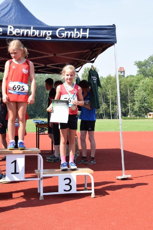 Einen sehr erfolgreichen Tag hatte auch Fabienne Sämisch (w9). Mit 3 persönlichen Bestleistungen (Ball-25,72m (2.), 50m-8,97 (3.), weit-3,19m (3.) durfte sie drei Mal auf dem Podest ihre Medaillen in Empfang nehmen.