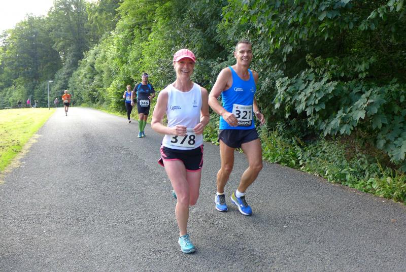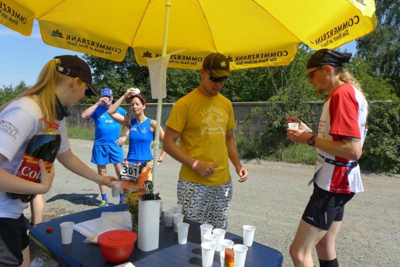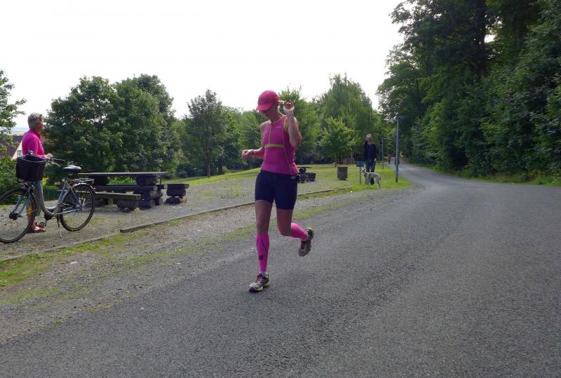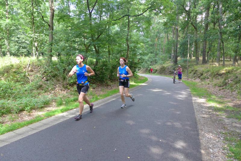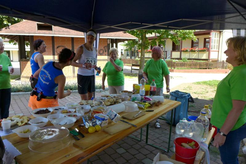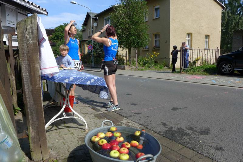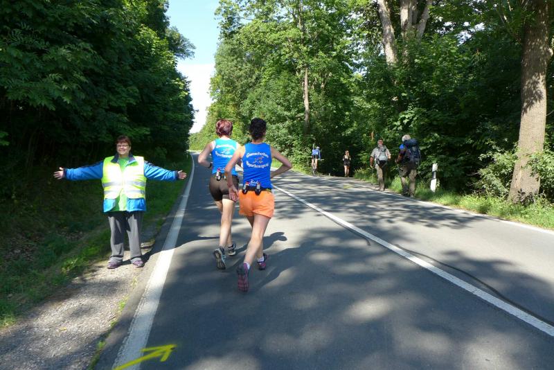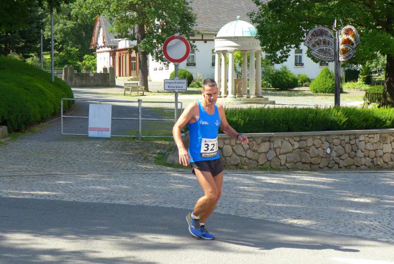 Kurz vor dem Start des Hauptfeldes der 26 Kilometer erhaschte Jens-Uwe Börner noch einen letzten Schnappschuss von den warmlaufenden Profis. Eine zu schnelle Bewegung, ein falscher Tritt, der Wadenmuskel riss und sendete nur noch Sterne an den Lädierten. Das bedeutet nun Trainingsausfall auf lange Sicht, was ein Start beim Köln-Marathon fast aussichtslos erscheinen lässt. Für Sylvia Köhn und Sabine Börner stand in der zweiten Woche des Trainingsplans ein ruhiger Langlauf an. Damit konnten auch die anstrengenden Bergpassagen gut genommen werden. Auf den letzten schweren fünf Kilometern durch die Mittagshitze kam ihnen dann Lauffreund und Trainer Lutz Klauß entgegen. Was für eine Überraschung! „Mädels, ihr denkt doch nicht, dass ich euch auf den letzten Kilometern alleine lasse!“ erwiderte Klauß die Freude. Gemeinsam ging es dann in Richtung Ziel. Klauß berichtete, dass Dirk Meier und Katrin Krebs auf ihrem Lauf schon ordentlich Tempo gemacht hatten. Im Gesamtklassement der Frauen verpasste Krebs nur um Sekunden das Podest und auch in der Altersklassenwertung musste sie sich trotz ihrer schnellen Laufzeit mit Platz 3 begnügen. Auch bei Ina Schöler war es haarscharf. Hatte sie in den Vorjahren eigentlich immer den Wanderpokal mit nach Hause genommen, fehlten am Ende ganze 24 Sekunden auf den Gesamtsieg. Trotz alledem waren die Damen mit ihren Zeiten sehr zufrieden. Ein gut organisierter Wettkampf mit anspruchsvollem Streckenprofil, der ganz im Sinne der aufgestellten Trainingspläne abgearbeitet wurde.