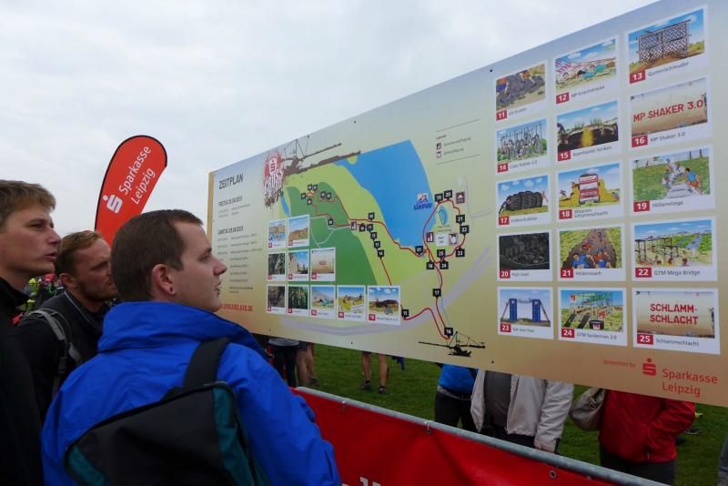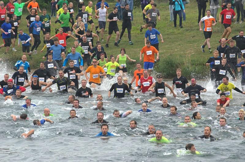 Um der großen Nachfrage gerecht zu werden und Staus an den 25 Hindernissen zu vermeiden, hatte der Veranstalter die 2000 Teilnehmer in vier Startblöcke geteilt. Gleich mit den ersten 500 Leidensgenossen, begann für die Gaensefurther ein weiteres Kapitel „Lauf extrem und unbequem“. Anfängliche Überlegungen, beim ersten Wasserhindernis mit den Schuhen in der Hand an das gegenüberliegende Ufer zu waten, zerplatzten so schnell wie Seifenblasen. Beide Arme wurden wirklich zum Schwimmen benötigt und die Schuhe hingen wie Blei an den Beinen, die so garkeiner Schwimmbewegung folgen wollten. Der Wettkampf dauerte also keine zwei Minuten und bis auf das Haupthaar war alles komplett durchnässt. Aber es hätte ärger kommen können, waren doch die Wetterbedingungen den Sportlern äußerst wohlgesonnen. Im ruppigen Gelände ging es durch erste harmlose Schlammlöcher und Röhren, bevor das „Markkleeberger Horn“ erklommen werden musste. Herabhängende Seile, Wurzelwerk und Geäst dienten dabei als Kletterhilfen. Nur war der Hang natürlich präpariert, so dass nach zwei Schritten vorwärts meist wieder einer zurück rutschte. Gut, wenn ganz oben eine rettende Hand aus dem Team wartete. Geschafft, so hart erklommen, ging es auf der anderen Seite am sichersten auf dem Allerwertesten wieder hinunter. Ab durch die grüne Hölle mit meterhohem Gestrüpp, drohten schon bald die Stromimpulse aus Weidezaunschnüren. Konzentriert und geschickt entgingen nur die Vorsichtigen dem unangenehmen Kontakt mit der Elektrizität. Endlich ging es im Kriechgang wieder durch zähen Schlamm. Nun dürften selbst die Fotografen Mühe gehabt haben, die Gestalten den nicht mehr zu entziffernden Startnummern zuzuordnen. Ein Teil vom trocken werdenden Dreck blieb dann vielleicht am nächsten Hindernis kleben. Aneinander gebundene Reifen galt es bis auf drei Meter Höhe zu erklimmen. Wer das geschafft hatte, musste dann nur noch auf der anderen Seite wieder runter kommen. Die Knie hatten in der nächsten längeren Laufeinheit dann wieder Zeit sich zu beruhigen. Gut fünf Kilometer dürften bis dahin ganz nebenbei gelaufen sein. Erneut gab es eine Abkühlung im Markkleeberger See. Nach ein paar ordentlichen Schwimmzügen ging es tropfnass auf eine Plattform. Noch etwas höher auf einem Podest, war die Variante des Eintauchens dann wieder jedem selbst überlassen. Wer hier zu wenig auf gut geschnürtes Schuhwerk oder auf eine unzureichende Befestigung seiner Startnummer geachtet hatte, der suchte mitunter vergeblich im tiefen Nass. Die 100 Treppenstufen vom angrenzenden Kanupark hinauf zur spektakulären Riesenrutsche boten sich an, dass überschüssige Wasser aus den Ohren zu hopsen. Atemlos lag sie dann vor den Crossläufern: Diese Rutsche war wirklich de Luxe! Der steil abschüssige Hang war breit mit Folie ausgelegt und Wasser beschleunigte die Abfahrt auf dem glatten Untergrund. Eine kleine Delle sorgte am Ende für das spritzige Eintauchen in die kleine Bremspfütze. Was für ein Spaß für die vielen Zuschauer. Also Augen zu, Luft anhalten und runter! Schließlich war von „Teil“-nahme die Rede. Kein Wort davon, dass man hier im Ganzen ankommen muss, scherzten die Gaensefurther. Die Stimmung im Team war großartig. Mit vereinter Kraft wurden auch die letzten Hindernisse gemeistert und kurz vor dem Ziel bereitete eine letzte Schlammpackung die richtige Stimmung für das Zielfoto. Acht Kilometer und 25 Hindernisse lagen hinter ihnen und so einige durften auch wirklich die erlösenden Duschcontainer aufsuchen. Aber doch nicht unsere Staffel! Unermüdlich und unbeirrt liefen sie durch das Ziel, direkt in Runde zwei. Der Moderator wünschte noch viel Spaß: „Ihr kennt den Weg?“