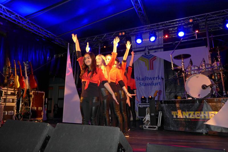 Bei der Show „Staßfurt in Flammen“ am vergangenen Freitag hatten die sieben Mädchen der Dance Factory Egeln nicht nur wieder einen großen Auftritt, sondern dieses Mal auch die seltene Gelegenheit, mit Melanie „Melli“ Müller (Mitte) auf einer Bühne zu stehen. Gemeinsam mit der Schlagersängerin, die auch als Erotikmodel bekannt geworden ist, zeigten sie beim Auftritt des Stargastes ihr Können und tanzten zu Melanies Liedern.