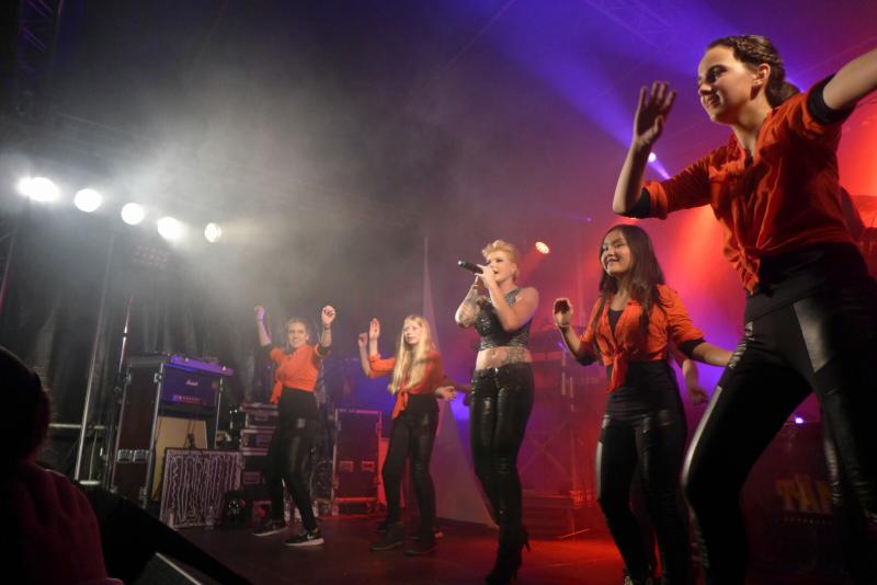 Mädchen der Egelner Dance Factory tanzen mit Melanie Müller