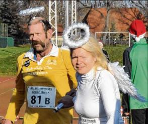 Im Team zu je zwei Läufern starteten die Teilnehmer. Es ging aber nicht darum, eine bestimmte Strecke in möglichst kurzer Zeit zu absolvieren – es war genau anders herum. In 30 beziehungsweise 60 Minuten mussten so viele Stadionrunden wie möglich absolviert werden. Sieger war das Team mit den meisten Kilometern. Gestartet wurde im Männer,-Frauen und Mix- Team. Außerdem wurden Preise für die schönsten Kostüme verliehen, weihnachtlich sollten sie natürlich sein. Dieser Preis ging an Heidi Schwenke und Silvio Kelle vom BSV Eickendorf. Beide „flogen“ als Weihnachtsengel durch das Stadion.