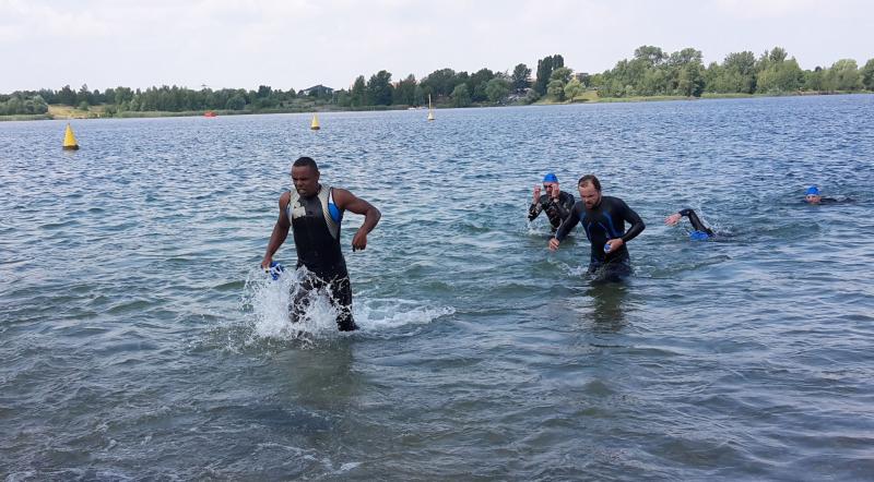 Sohn Finn war am Samstag im Einsatz. Er startete in der Altersklasse Schüler M/C, bei der 100 m zu schwimmen, 1 km Rad zu fahren und 700 m zu laufen waren. Mit Ehrgeiz war Finn bei der Sache und schaffte eine Zeit von 11:40 Minuten. Am Ende bedeutete das Platz vier in seiner Altersklasse.