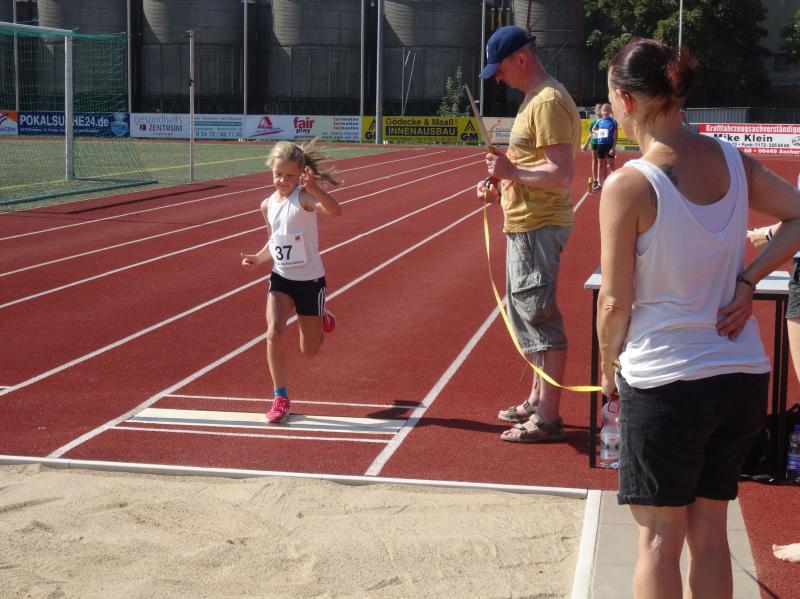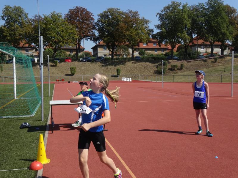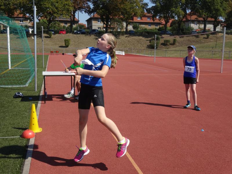 Bei den Mädchen der Altersklasse w10 stellte sich Fabienne Sämisch nach längerer Wettkampfpause ihren Konkurrentinnen. Mit 2 neuen persönlichen Bestleistungen von 8,79 Sekunden über 50m und 3,27 Meter im Weitsprung erkämpfte sie sich zusammen mit 22,50 Meter im Schlagballweitwurf die Silbermedaille im Dreikampf (963 Punkte). Als sie sich über 800m mit weitem Vorsprung den Sieg holte, war die Freude riesengroß.