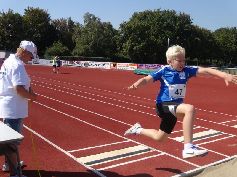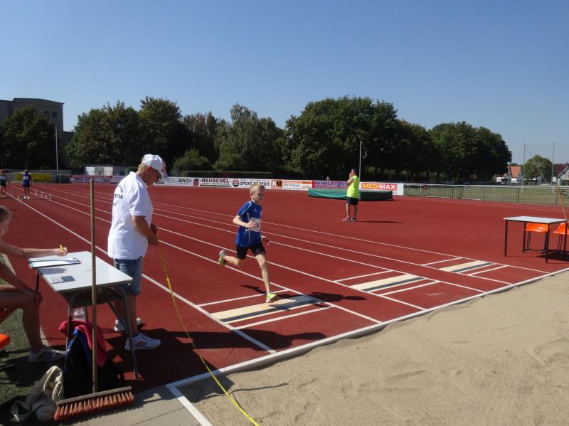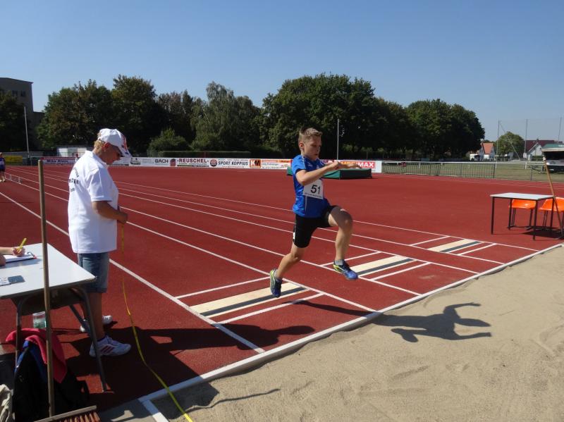 Die größte Gruppe in einer Altersklasse bildeten die 10 jährigen Jungen. Mit 8,09 Sekunden im 50m Lauf, 4,03 Meter im Weitsprung und neuer persönlicher Bestleistung (PB) von 34,00 Meter im Schlagballweitwurf wurde Lars Weidig seiner Favoritenrolle laut Anmeldeliste gerecht und sicherte sich den Sieg im Dreikampf mit 1012 Punkten. Auf Platz 2 folgte Lukas Ladehoff (50m-8,80s/weit-4,43m/Ball-30,50m) mit 956 Punkten. Der 3. Podestplatz schließlich gehörte Jan Hübner (50m-8,56s/weit-3,63m/Ball-32,50m (PB). Trainingskamerad Marc Krüger, bisher mit wenig Wettkampferfahrung, erreichte mit (50m-9,12s/weit-3,43m (PB)/Ball-20,00m(PB) und 717 Punkten Rang sieben. Aber auch er ging an diesem Tag nicht leer aus und wurde mit einem Sprung auf das Treppchen belohnt, denn im 800m Lauf konnte er sich mit 3:16,13 Minuten über Platz drei freuen.