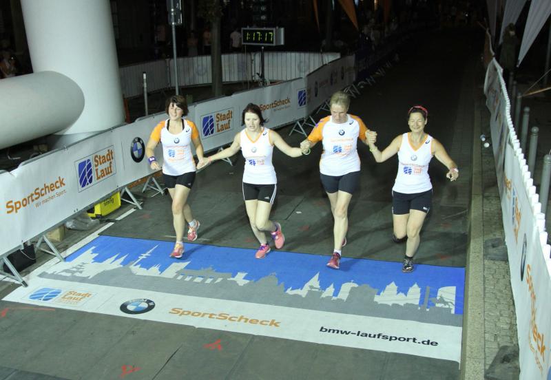 Seit einigen Wochen verstärken sie schon die Trainingseinheiten der Laufgruppe Bode-Runners von der Gaensefurther Sportbewegung. Kathleen und Nico Mahler fühlen sich bei den Gleichgesinnten gut aufgehoben und werden in Zukunft hoffentlich viele gemeinsame Höhepunkte mit den Bode-Runners teilen. Während sich Sylvia Köhn und Sabine Börner beim SportScheck Nachtlauf in Magdeburg das Ziel gesetzt hatten, Renate Liedtke über die zehn Kilometer in das Ziel zu bringen, schenkte sich Kathleen Mahler auf der Fünf-Kilometer-Distanz nichts. Allen voran überquerte sie als erster Bode-Runner den Zielbogen im lichtdurchfluteten Zieleinlauf vor dem Allee-Center im Herzen Magdeburgs. Nico Mahler kam mit seinen Kollegen locker angelaufen, verfolgte er doch das Ziel am Sonntag bereits wieder beim Wolfsburg Marathon über die 21,1 Kilometer anzutreten. Renate Liedtke, die ganz spontan für den verschnupften Jens-Uwe Börner eingesprungen war, genoss die Atmosphäre durch das nächtliche Magdeburg, vorbei an vielen beleuchteten Highlights der alten und neuen Ottostadt. Entgegen der Mahlers, ging es für sie auf eine weitere Fünf-Kilometer-Runde durch die Nacht. Im Gleichschritt mit den beiden Vereinskolleginnen wurde es immer ruhiger um die Seniorin, die bereits in der Altersklasse der 60 bis 65-jährigen startete. Zeit für aufmunternde Worte des Ansporns, die von den Zuschauern und Streckenposten prompt auf Liedtke einprasselten: „Hut ab, weiter so!“ Stolz und zufrieden lächelten Köhn und Börner in sich hinein, ja das hatte Renate verdient! „Nebel wäre jetzt schön!“ rief Börner dem DJ laut zu. Und tatsächlich zischten dichte Nebelschwaden aus dem Lichtbogen vor der Sternbrücke und ließ die Damen für kurze Zeit im Nichts verschwinden. Die Beine liefen im Takt der Musik und selbst die Brücke schien ihren Spaß zu haben und wippte bei jedem Schritt ein ganz klein wenig mit. Eine weitere Dame hatte sich dem Tempo des Trios angeschlossen und folgte konzentriert und ohne ein Wort. Noch einmal grüßten die imposanten Domgemäuer, bevor die Läufer wieder auf den Breiten Weg einbogen. Vorbei am Hundertwasserhaus füllten sich die Zuschauerreihen noch einmal und bereiteten den Damen einen atemberaubenden Empfang. Zufrieden fielen sich die Finisher in die Arme: „Gut gemacht Renate!“